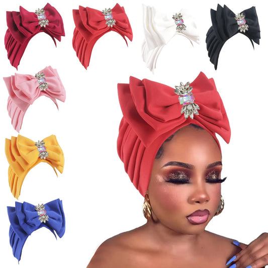 Women's Sweet Turban Cap with Multi Layer Bow Tie African Lady Head Wraps Bonnet