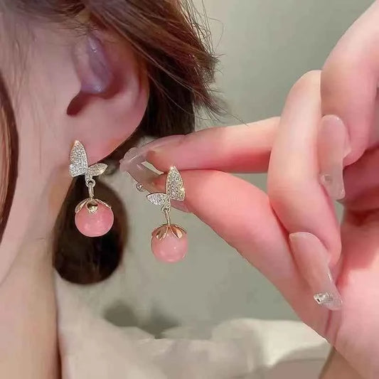Korean Fashion Butterfly Earrings Earrings for Women Pink Opal Dangle Earrings Valentines Day Anniversary Birthday Jewelry Gift