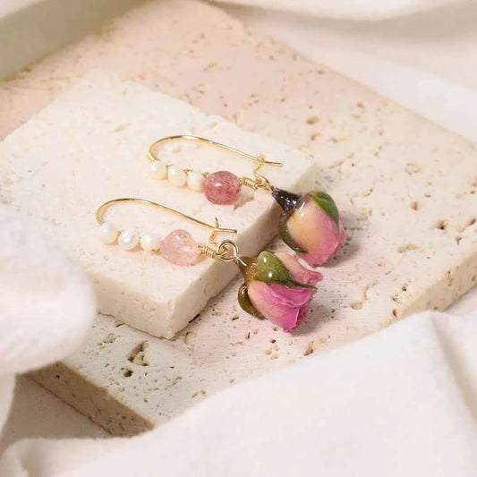 Natural Freshwater Pearl Drop Gel Flower Earrings Korean Style Women's Luxury Vintage Jewelry Fashion Ladies and Girls Gift