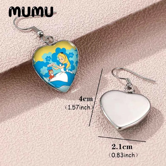 2024 New Alice in Wonderland Dangle Earring Heart Shaped Earrings Handmade Glass Dome Jewelry Gifts Fans