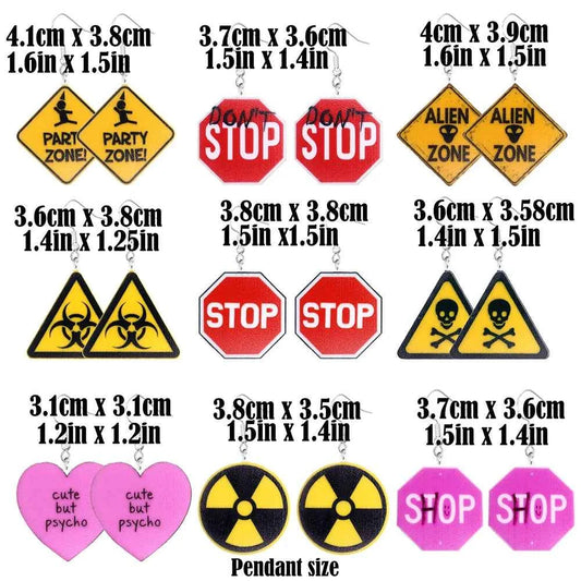 Cartoon earrings, acrylic cute, funny stop, road signs, warning signs, aliens