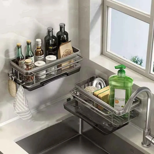 1pcs Multifunctional Wall-mounted Drain Rack Kitchen Rack Punch-free Rag Rack Spice Rack Sink Storage Rack Kitchen Supplies