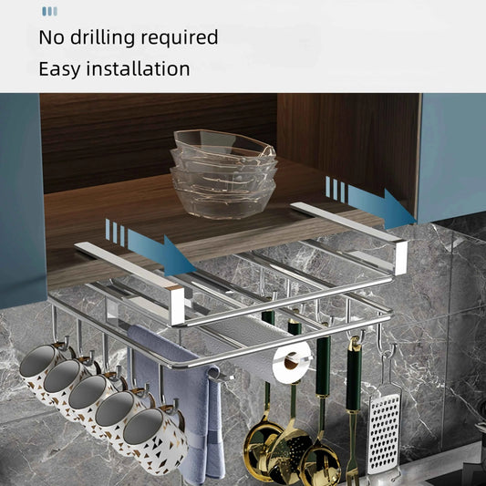 1PC Stainless Steel Hanging Kitchen Storage Rack with Hooks Paper Towel and Utensils Holder Cutting Board Storage Shelf