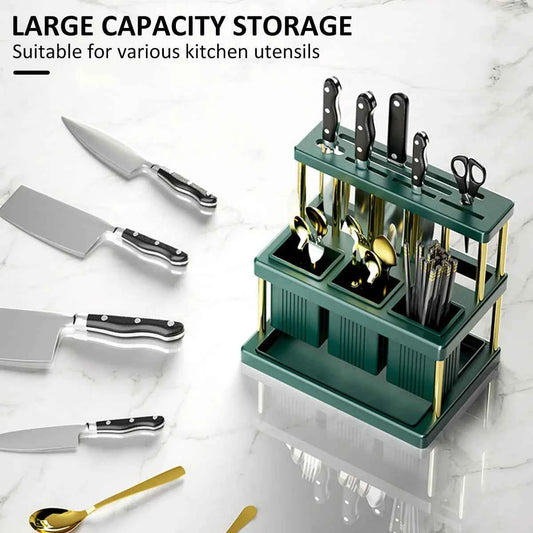Kitchen Knife Holder Multi-Function Cutter and Cutlery Drainer Rack PP Space Saving Kitchen Utensil Organizer Rack New