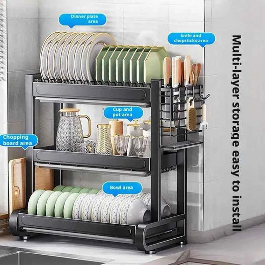 Kitchen Dish Bowl Drainer Storage Rack Countertop Dinnerware Organizer Drain Basket Household Dish Drying Rack Stand Shelf