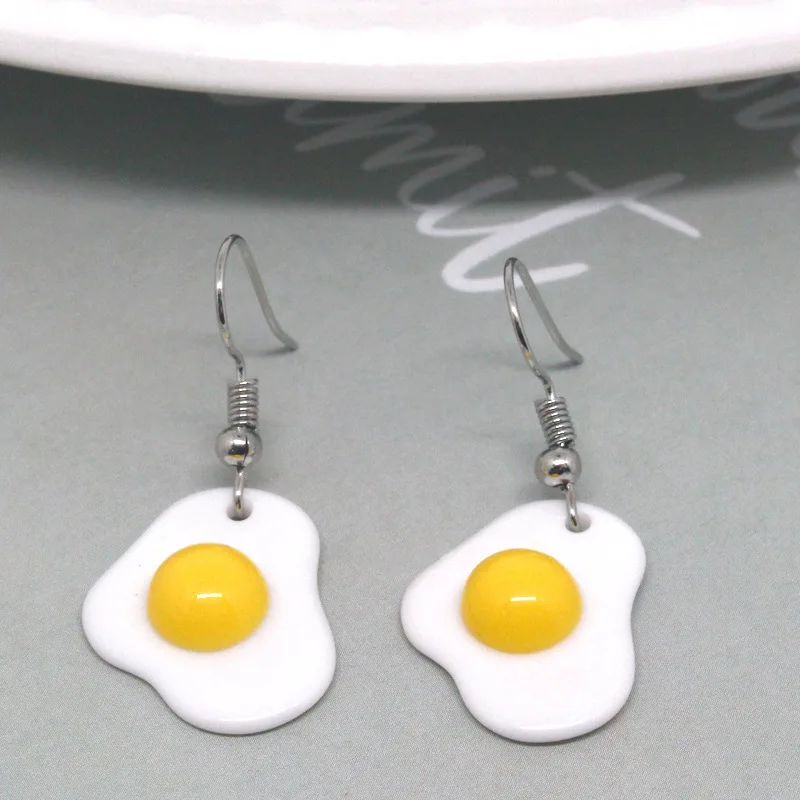 1 Pair Fun Fried Egg Drop Earrings For Women Gift Fashion Creative Cute Geometry Yolk Poached Egg Food Dangle Earrings Jewelry