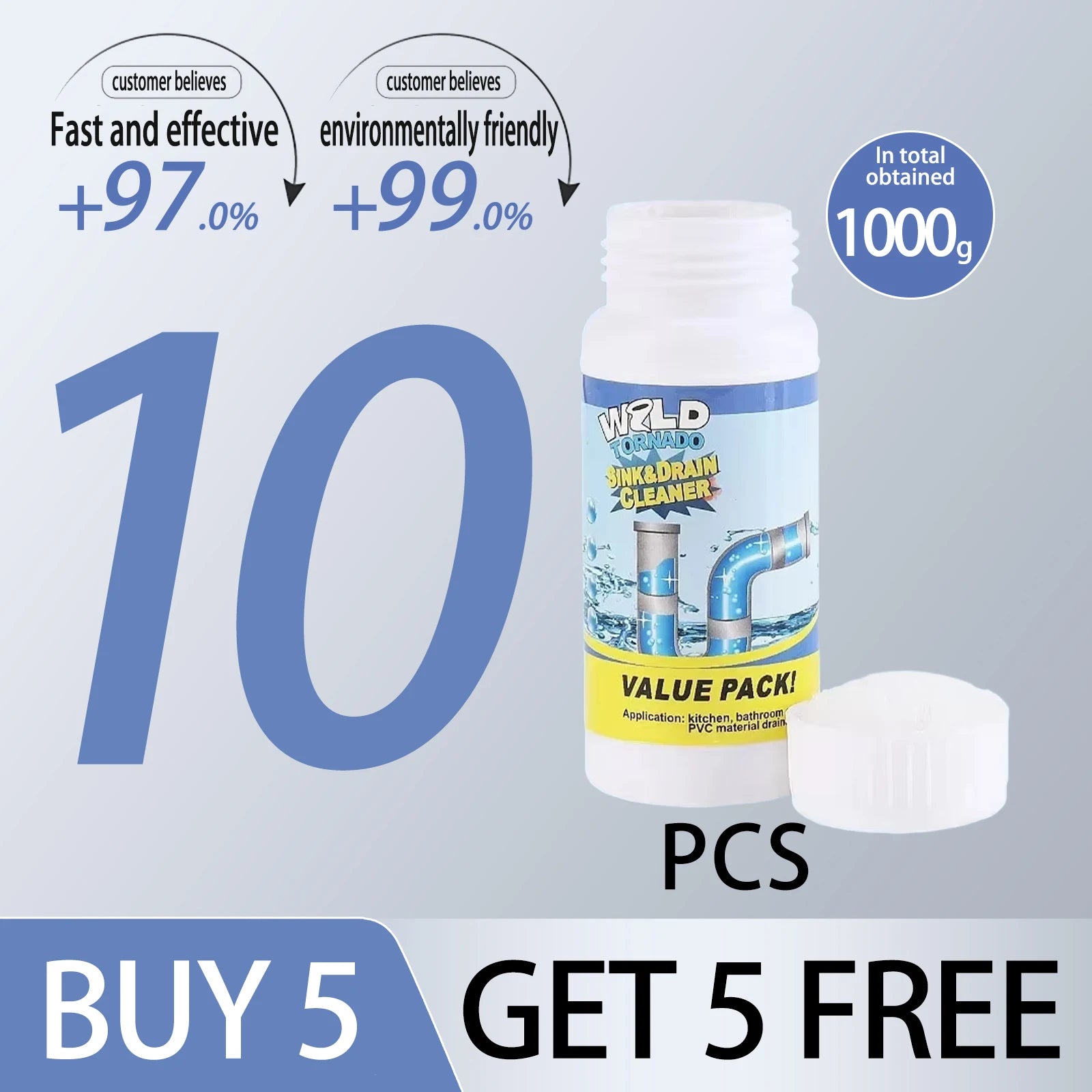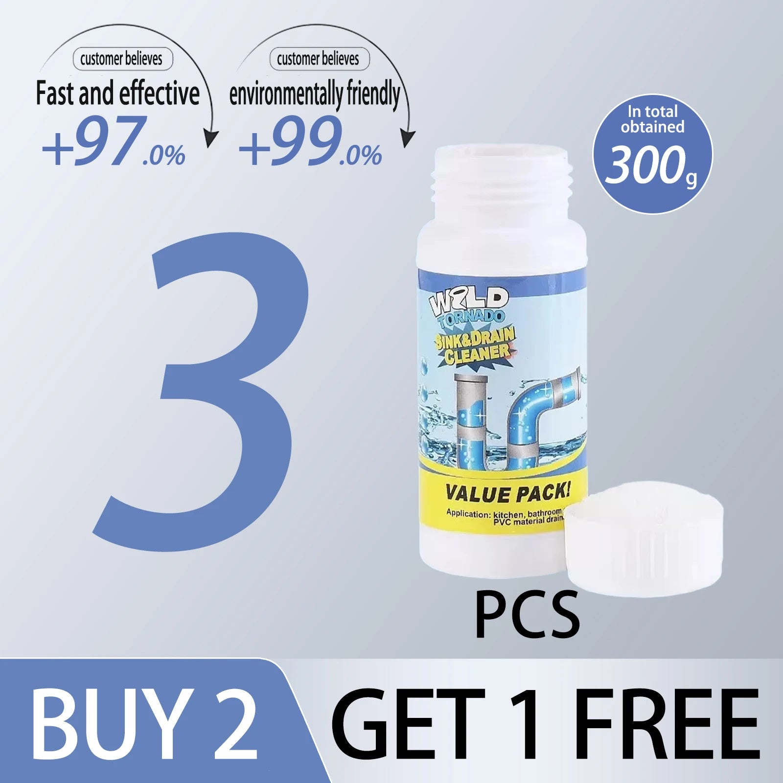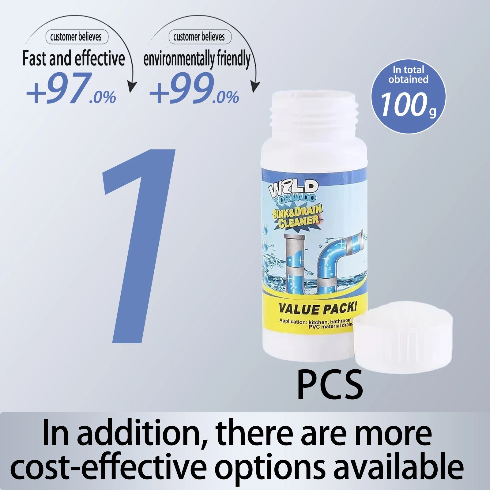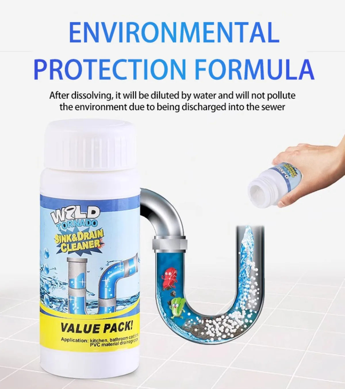 Powerful Sink & Drain Cleaner gets the job done by dissolving grease, hair, paper, soap scum, oils and organic matter easily.
