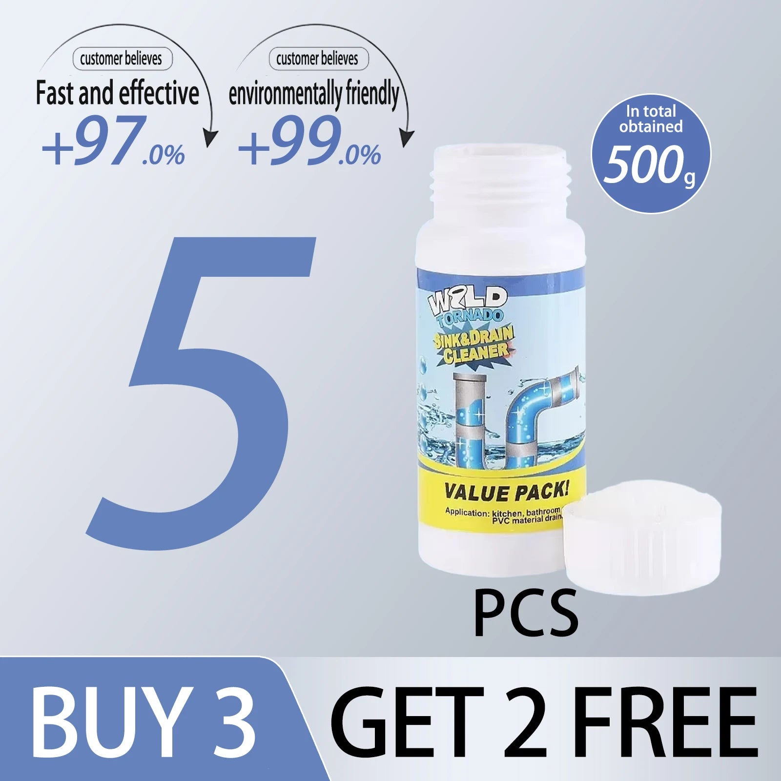 2;Add 50-100 grams of dredging agent and 500ML-1000ML of warm or hot water to accelerate dredging
