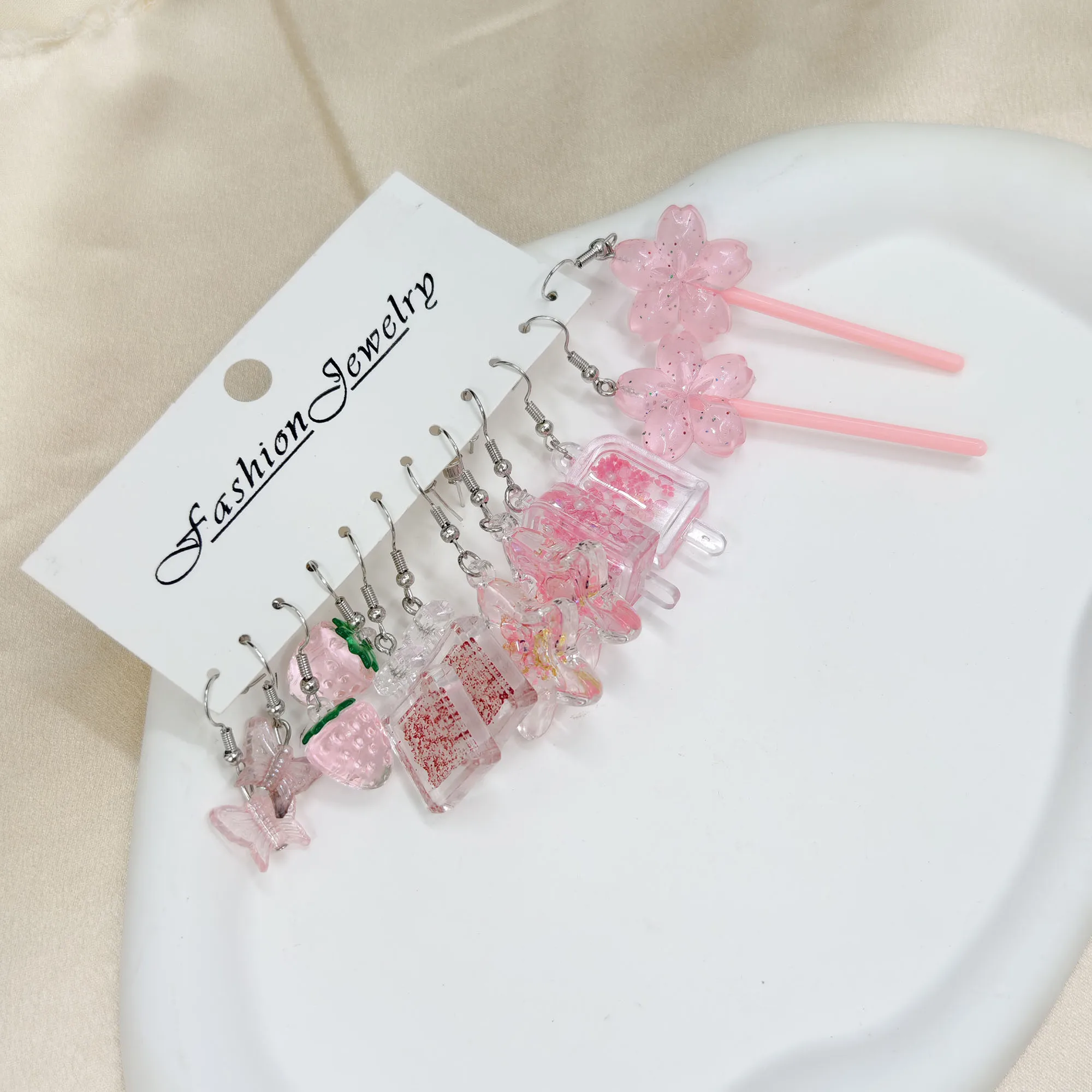12pcs Strawberry Starfish Ice Bar Earrings, Resin Simulation Flower Candy Earrings Set