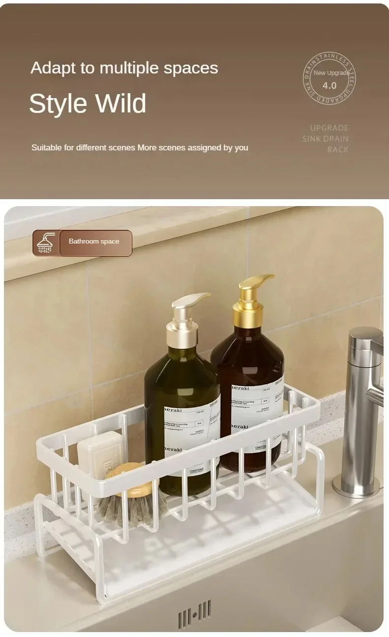 The sink drain rack is a storage and drainage tool in the kitchen sink area. It is designed specifically for storing kitchen cleaning tools, and can accommodate items such as dishwashing detergent, sponge cloths, steel wire balls, cleaning brushes, etc. in one stop. The lower water tray can receive dripping water stains, avoiding damp countertops; There is also a towel bar on the side, which is convenient for hanging cloths and can easily adapt to most kitchen sink spaces, making messy cleaning tools instantly organized and creating a clean and refreshing environment for the kitchen.