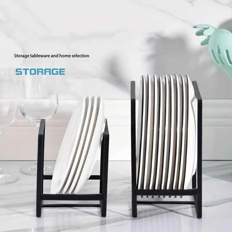 1pc Sleek Metal Dish Rack Set, Space-Saving Tiered Shelf Organizer, Plate & Utensil Holder, Pull-Out Design, Kitchen Storage