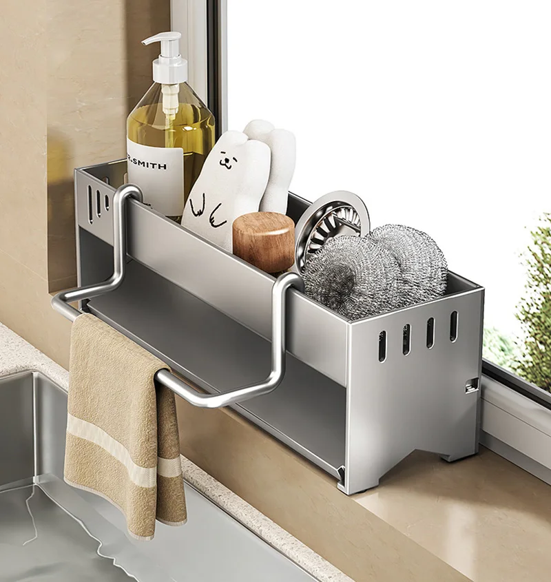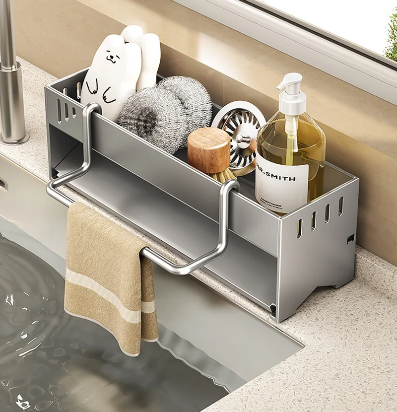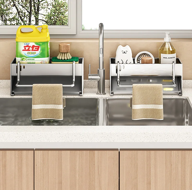 1pc Stainless Steel Kitchen Storage Rack Large-capacity Rag Sponge Draining Rack Household Sink Storage Rack Kitchen Organizer