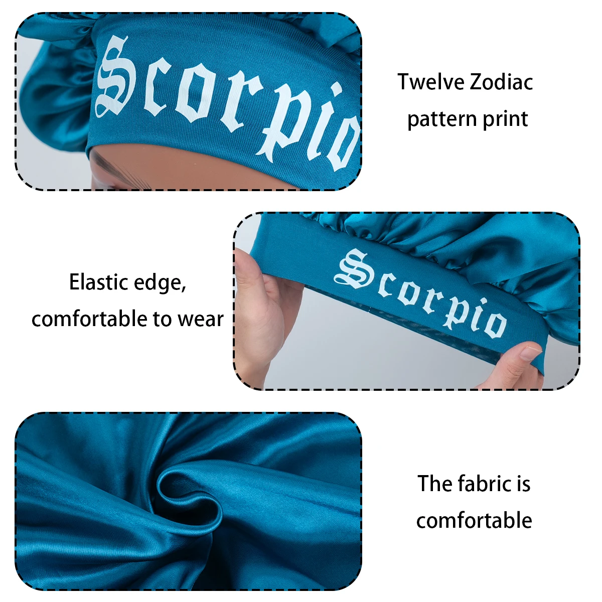 1PConstellation Print Satin Sleep Bonnet with Wide Band Soft Wrap Band for Daily Use Makeup & Face WashingComfortableSleepingCap