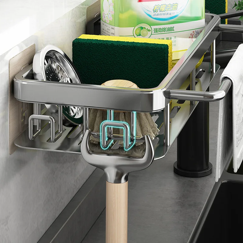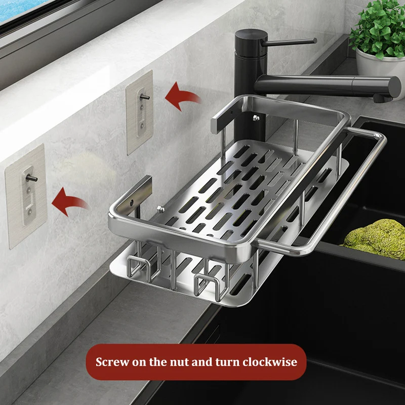 1pcs Multifunctional Wall-mounted Drain Rack Kitchen Rack Punch-free Rag Rack Spice Rack Sink Storage Rack Kitchen Supplies