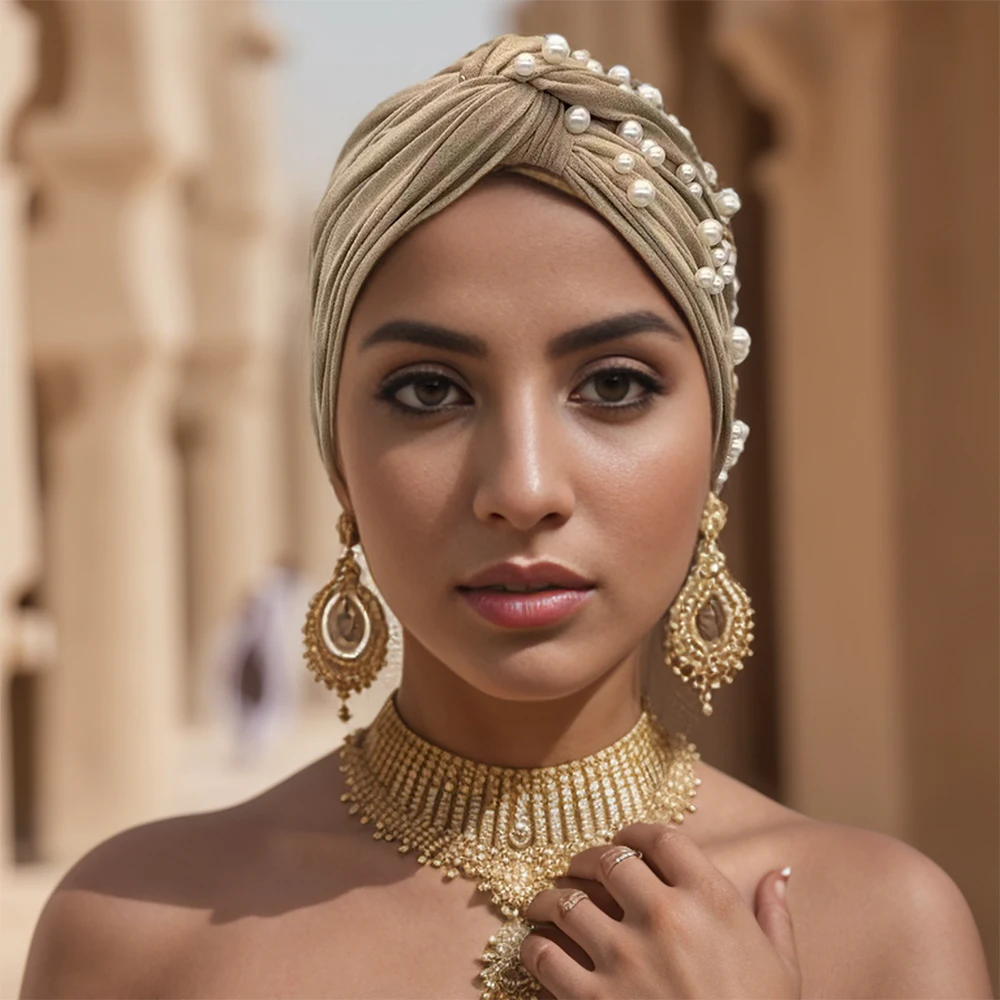 2024 Suede Twisted Turban Cap for Women Beading Head Wraps Bonnet Muslim Headscarf Hat Lady Wrap Head Scarf