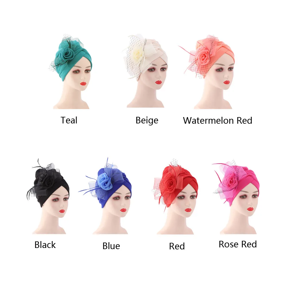 2025 Trendy Women Big Flower Turban Hat Fashion Muslim Hijab Caps Head Wrap Femme Bandana Chemo Cap African Headpiece Hat Indian