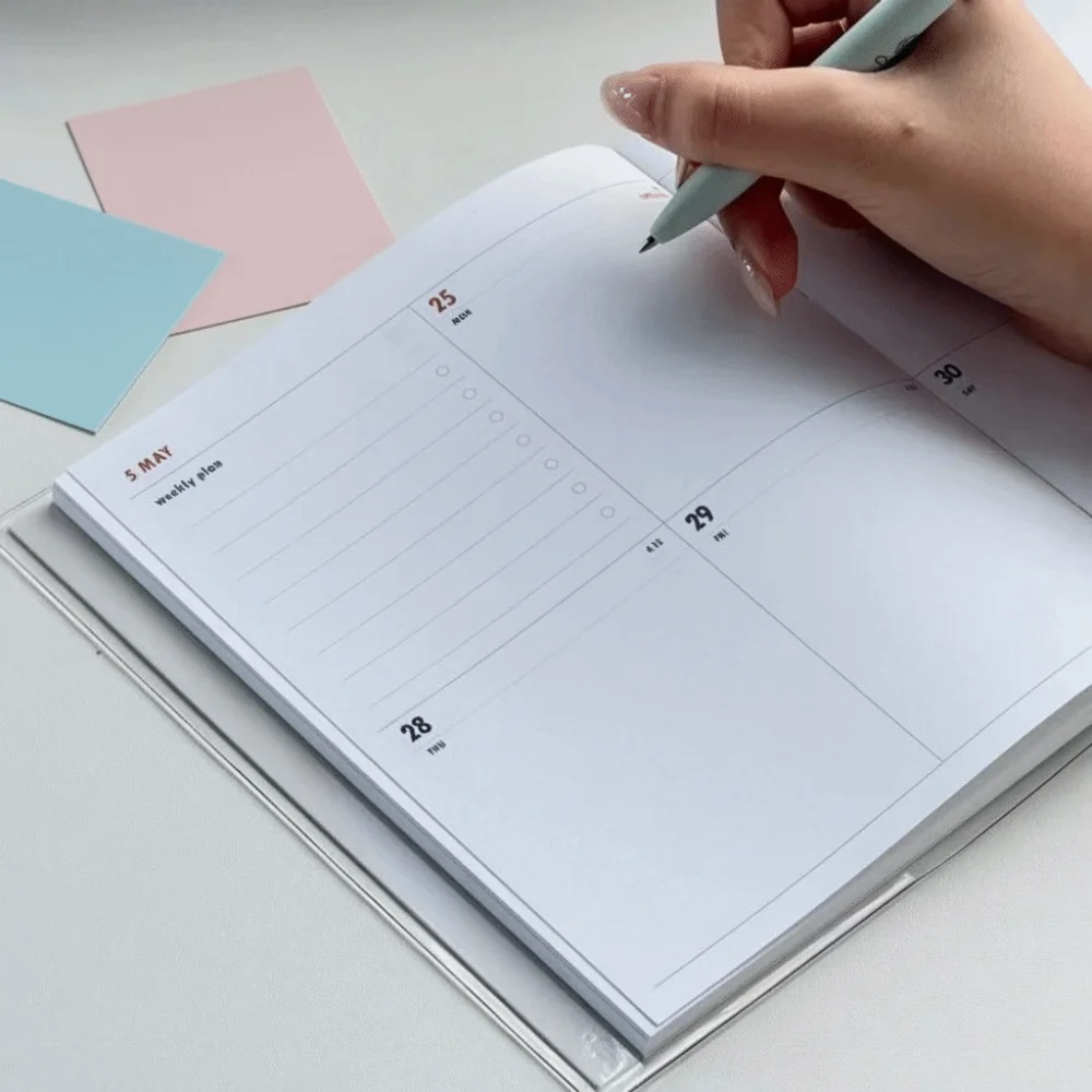 2026 Schedule Life Planner Book Retro Minimalist Student Study Diary Planner Hardcover PVC Journal Notebook Weekly Layouts