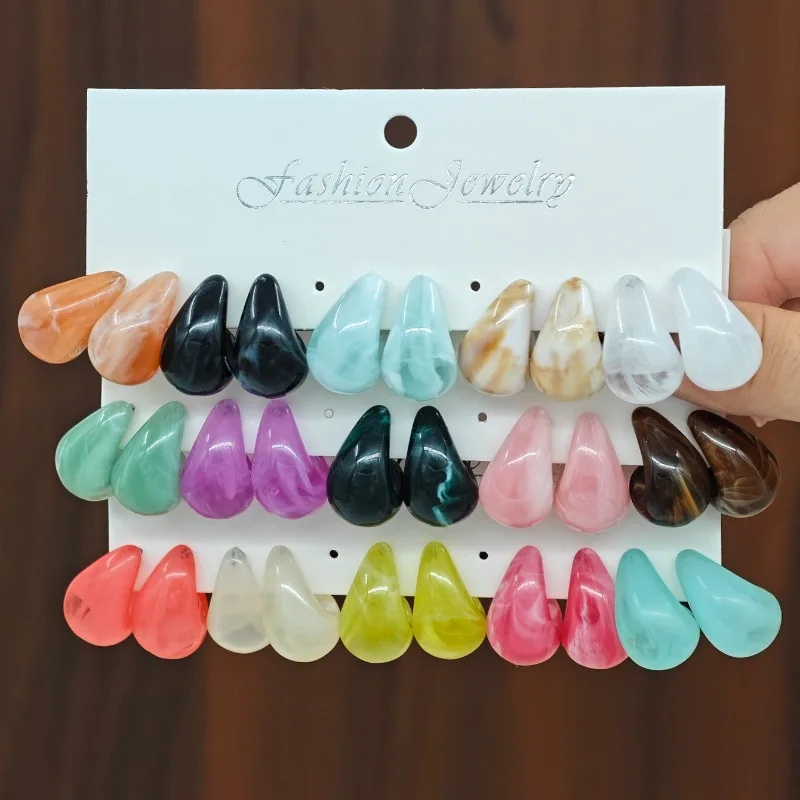 30pcs Imitation Jade Pattern Gradient Creative Dopamine Colored Water Droplet Earring Set for Women