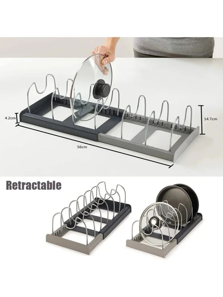 6 grids Kitchen Cabinet Organizers for Pots and Pans Expandable Stainless Steel Storage Rack Cutting Board Drying Cookware Shelf