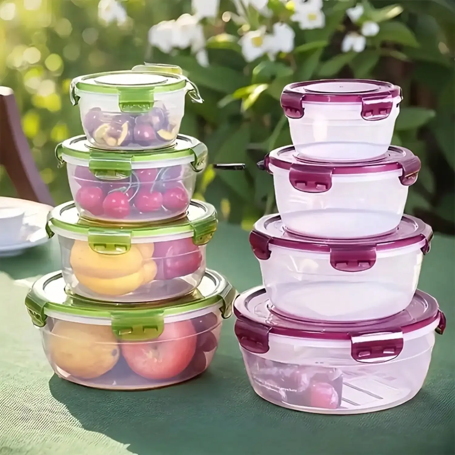8pcs/set (4 Containers+4 Sealed Lids) - Kitchen Vegetable and Fruit Storage Box, Microwave Safe Round Bento Box