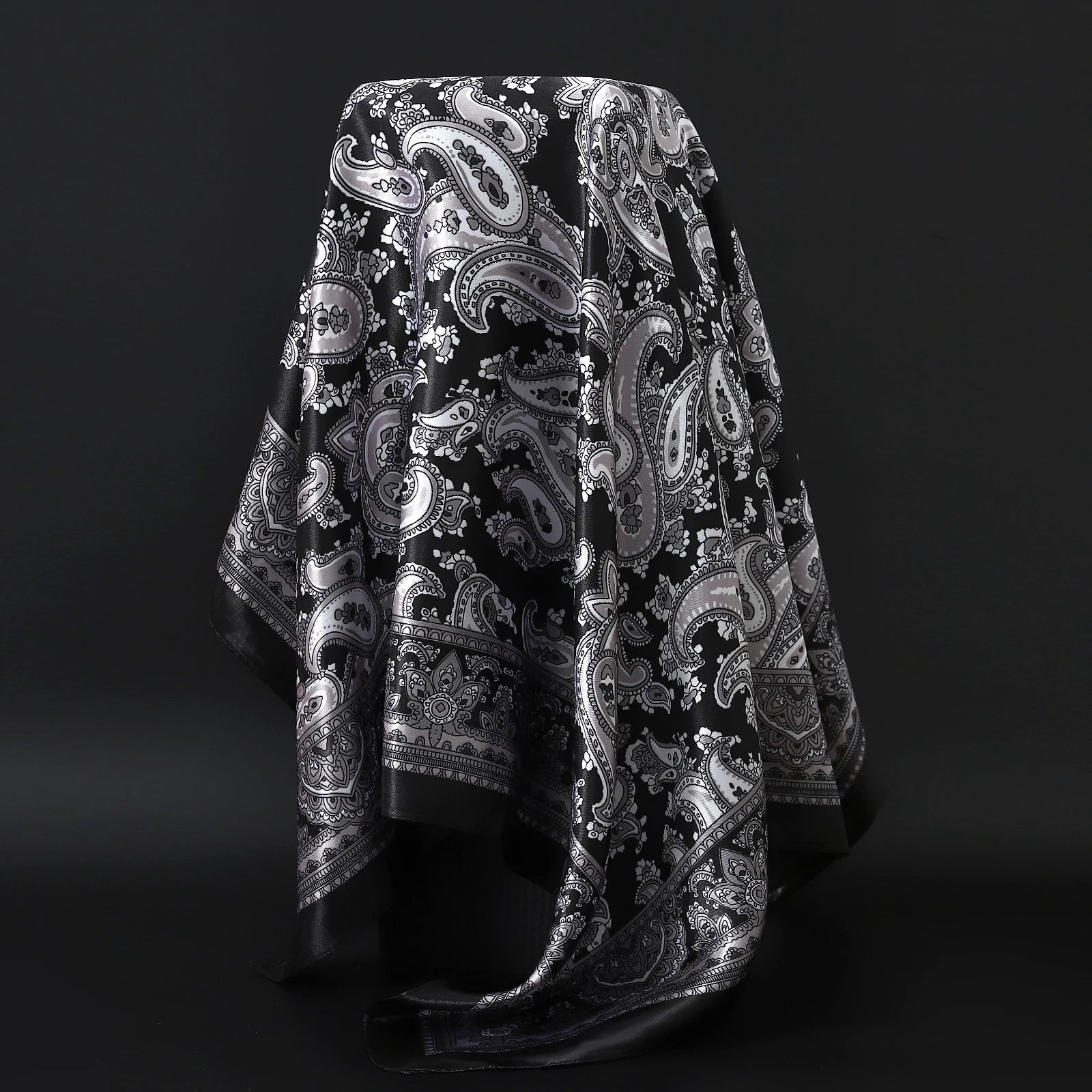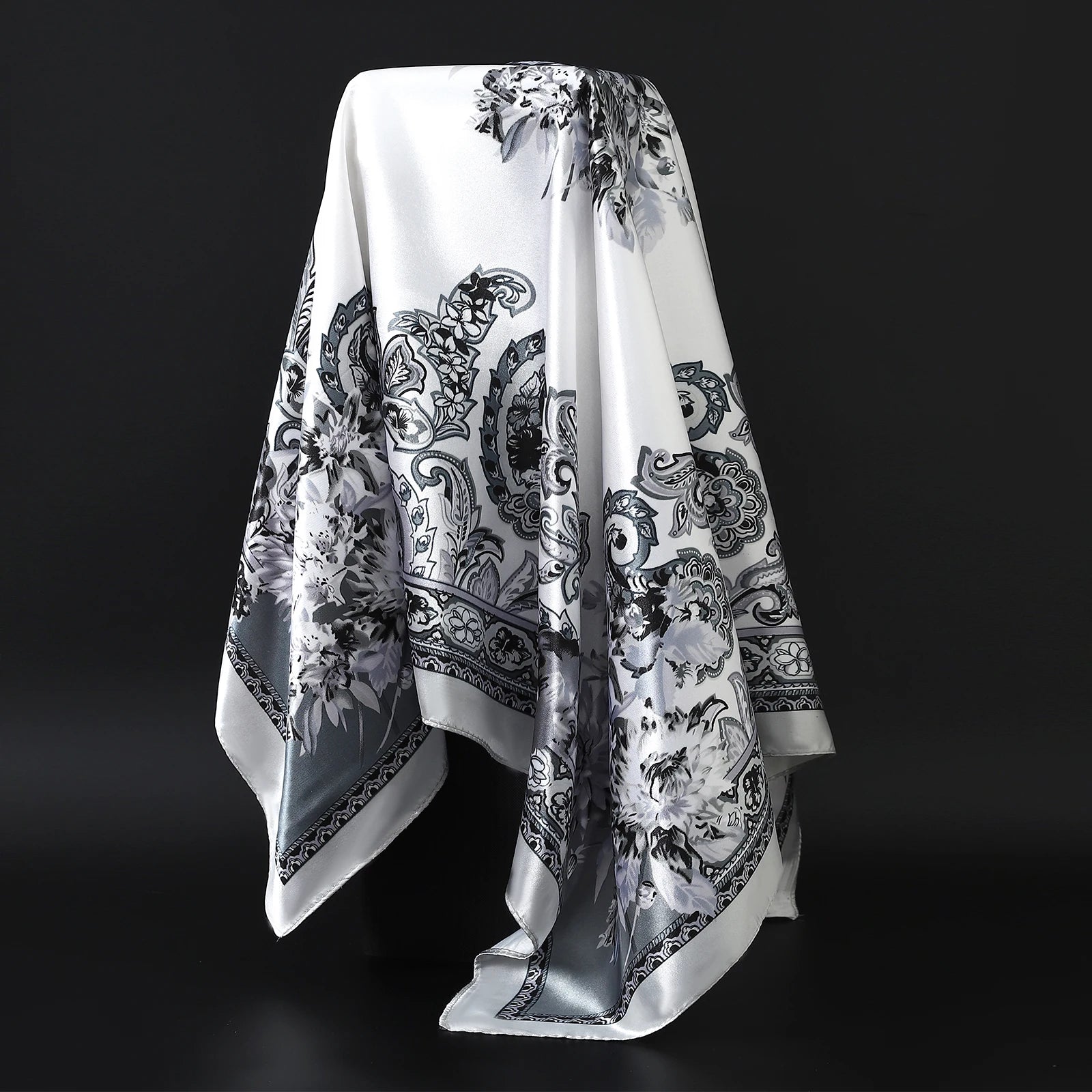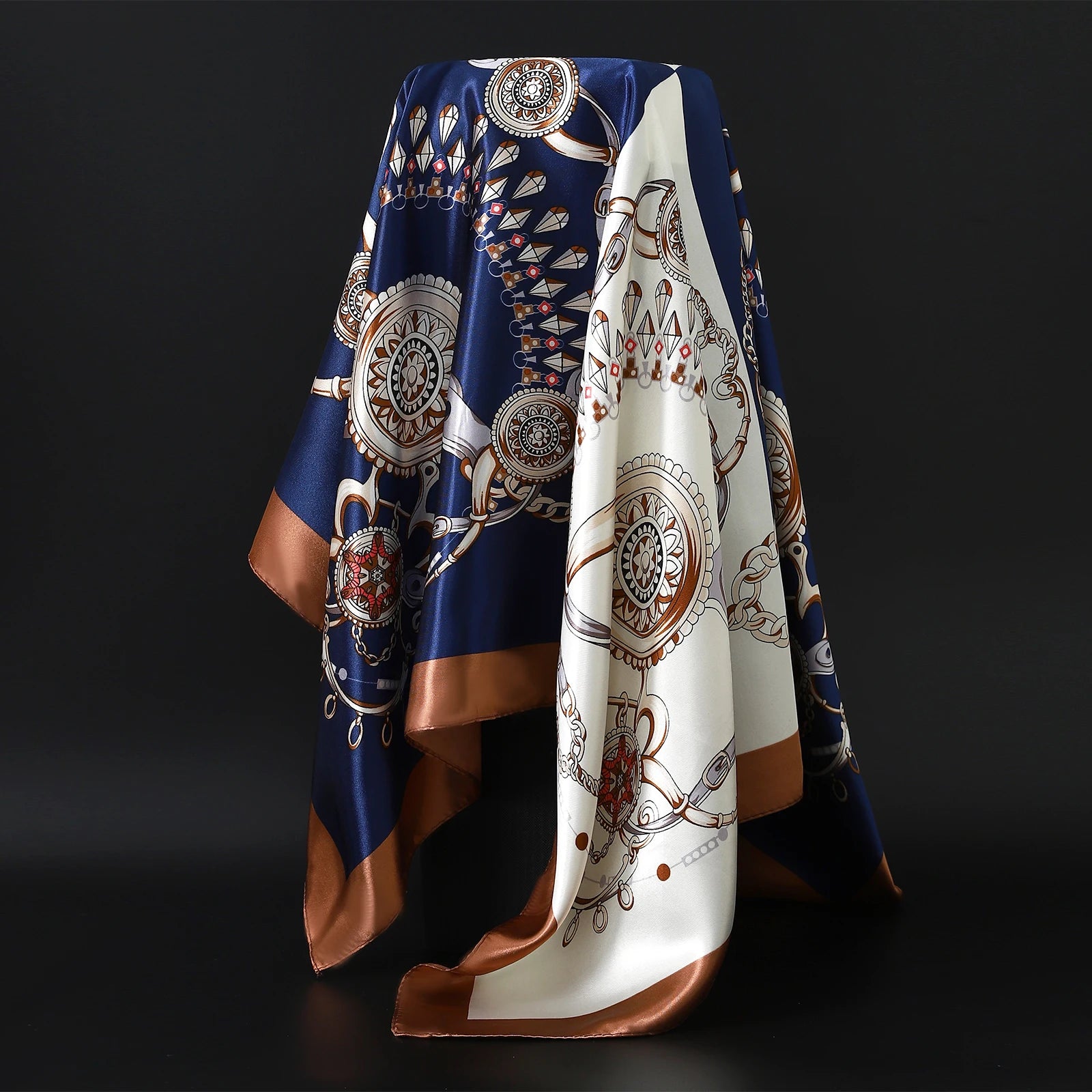 90*90cm Silk Scarf Women Print Hair Neck Square Office Ladies Shawl Bandanna Muslim Hijab Handkerchief Muffler Foulard female