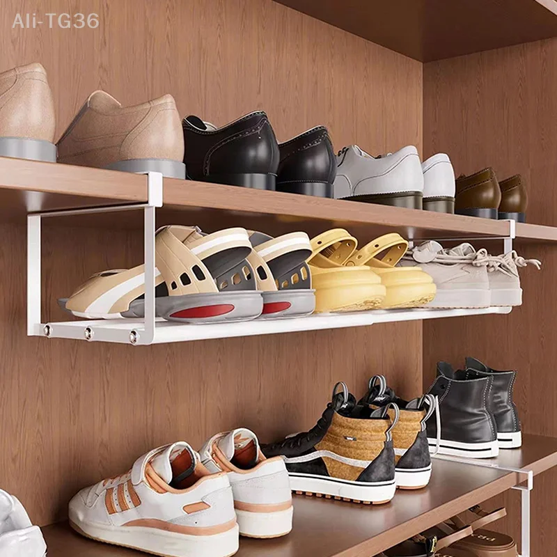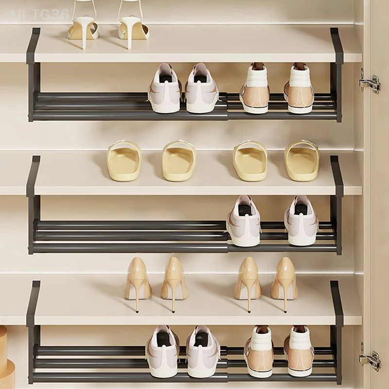 Adjustable Shoe Rack Space-Saving Layered Organizer For Home Shoe Cabinets Under-Shelf Shoe Holder With Hanging Basket xkdae