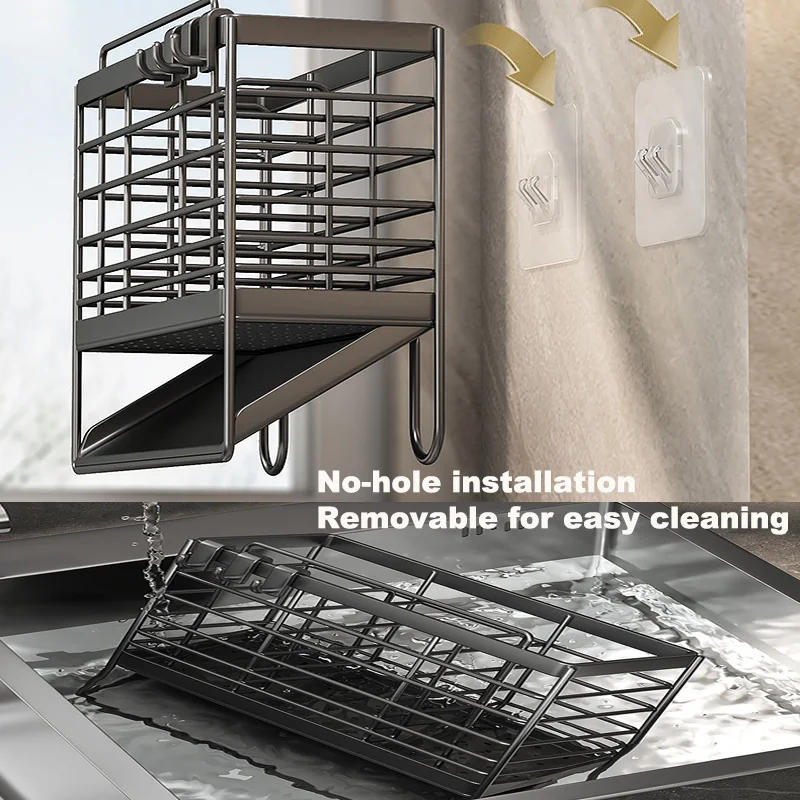 Cutlery Organizer Kitchen Storage Rack Wall Mounted Knife, Fork, Spoon Chopstick Rack with Drainage Tray Kitchen Utensil Cage