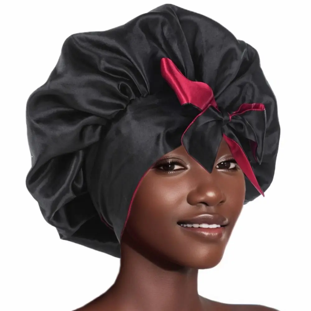Double-layer Satin Sleep Cap Fashion Adjustable Stretchy Tie Band Silky Satin Bonnet Curly Hair Elastic Hair Cap Sleeping