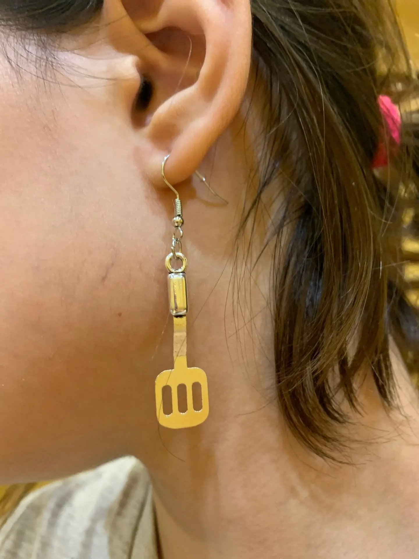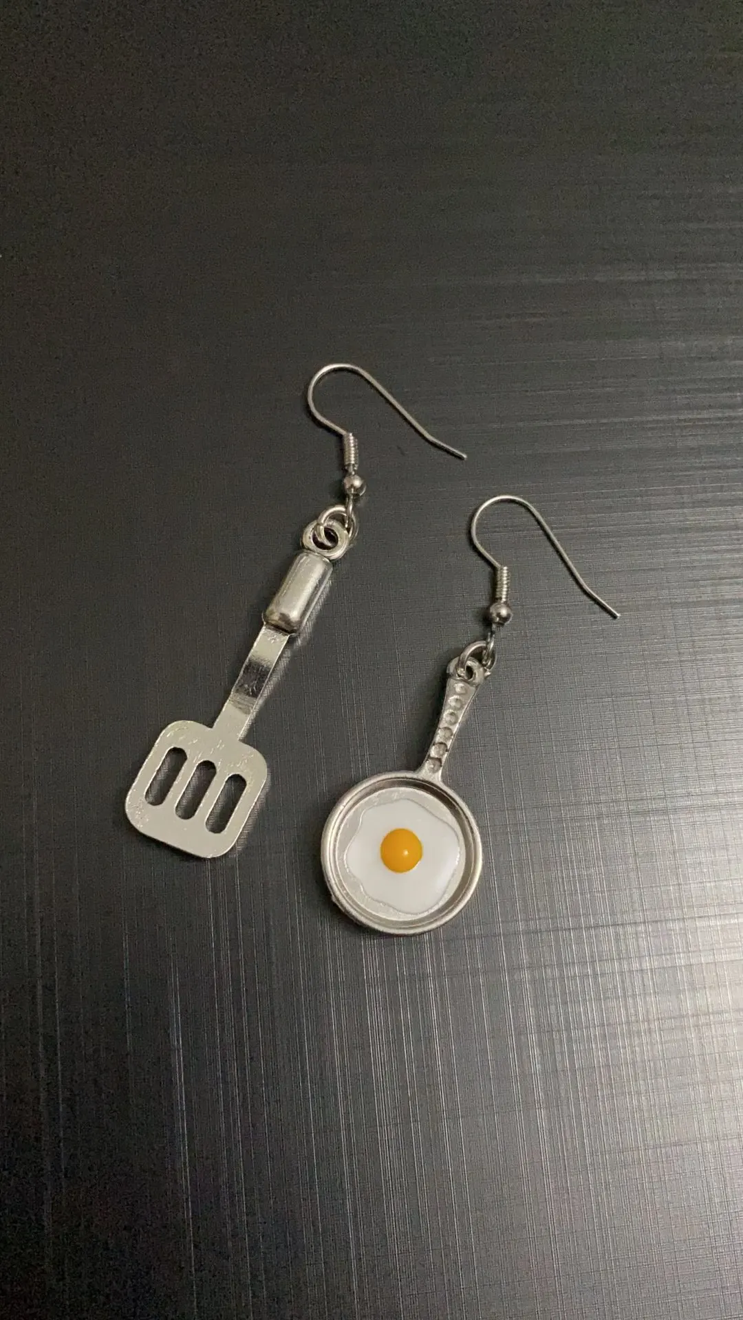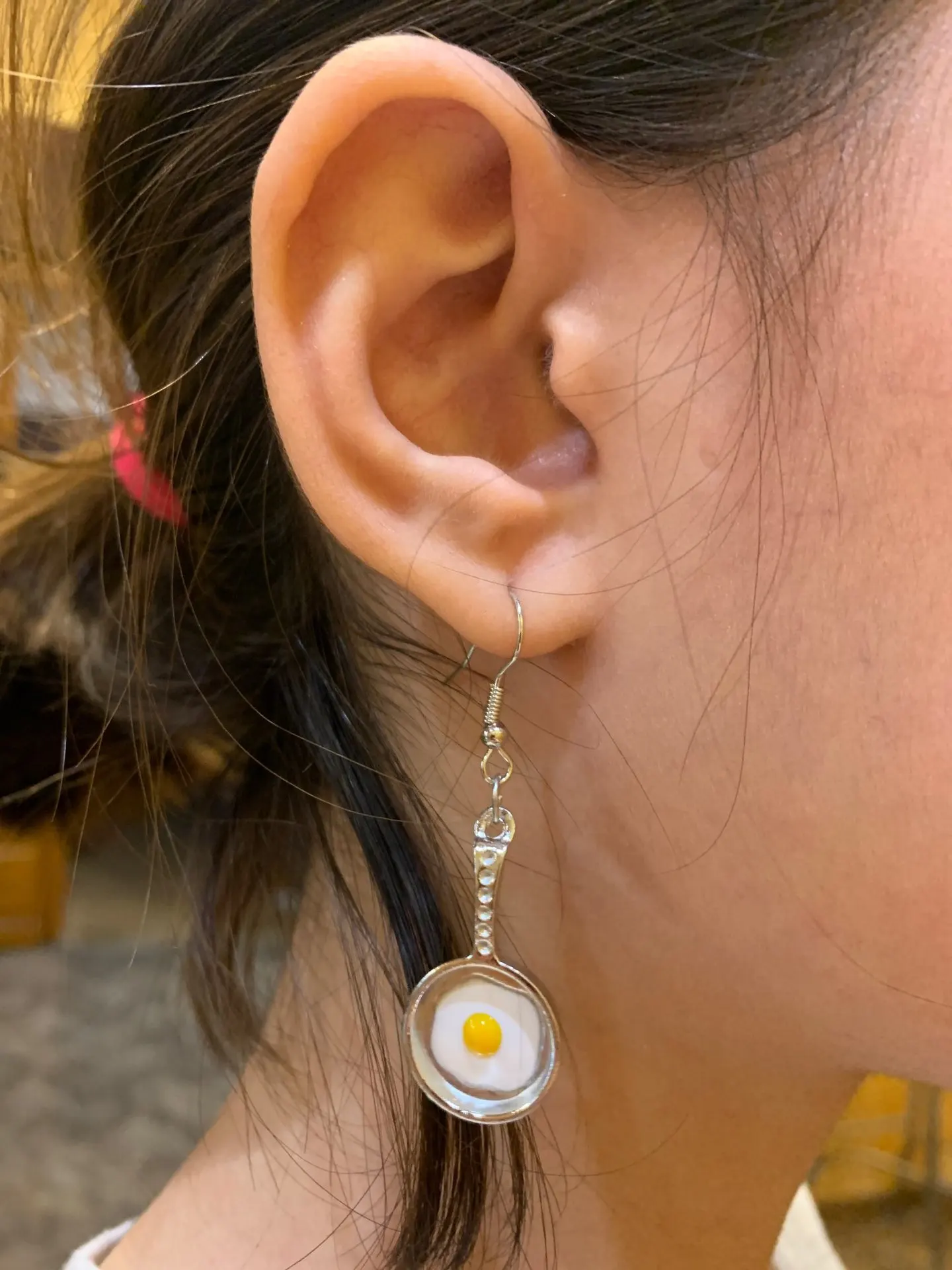 Egg Pot Spatula Earrings Poached Egg Fried Egg Spatula Earrings Kitchen Utensils Creative Asymmetric Earrings