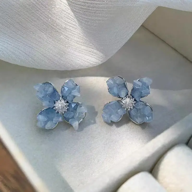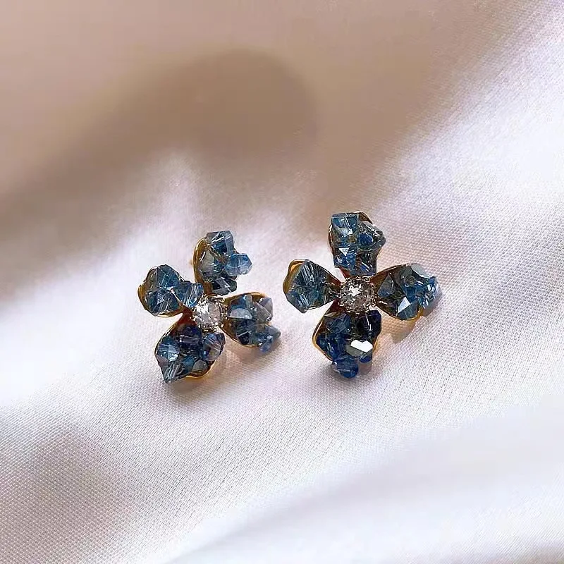 New Fashion Crystal Flower Stud Earrings for Women Exquisite Elegant Dangle Earring Vintage Wedding Party Luxury Jewelry Gift