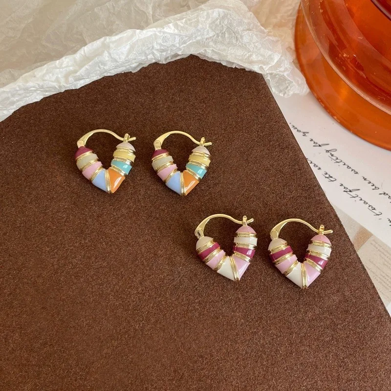 Retro oil dripping colored petal earrings for women with a niche design sense, personalized simplicity, and versatile earrings