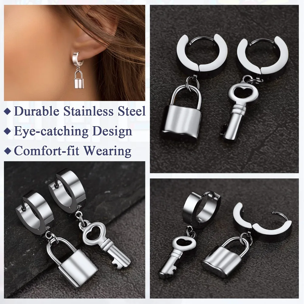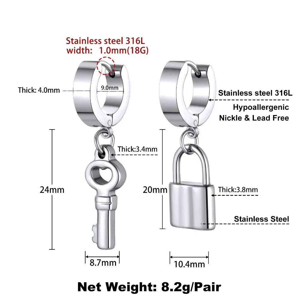 Stainless Steel Charms Dangle Drop Earrings for man and woman Ankh Cross Padlock Italian Horn Evil Eye Key Lock Rivets Moon Star Megan Star of David Unisex Drop Earrings BFF Couple Lover Jewlery Gift
