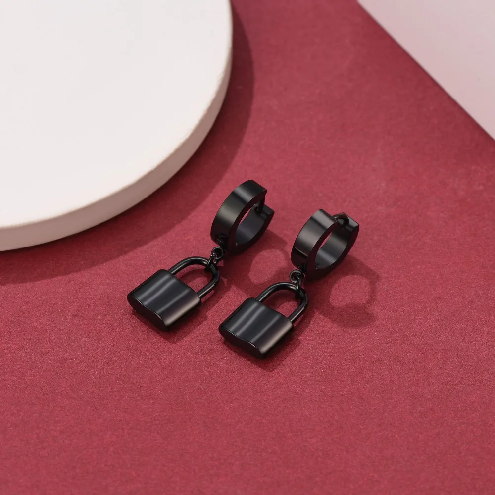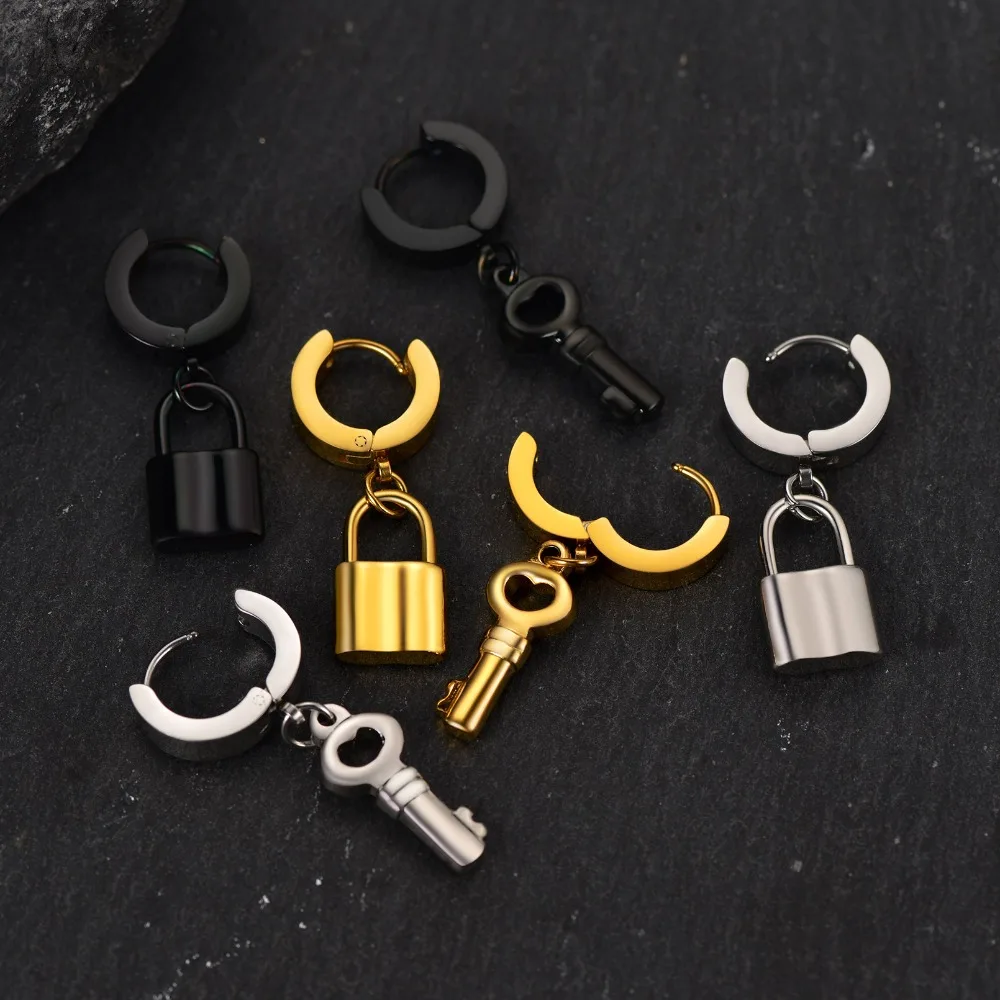 Stainless Steel Charms Dangle Drop Earrings Ankh Cross Padlock Italian Horn Evil Eye Key Lock Rivets Moon Unisex Drop Earrings
