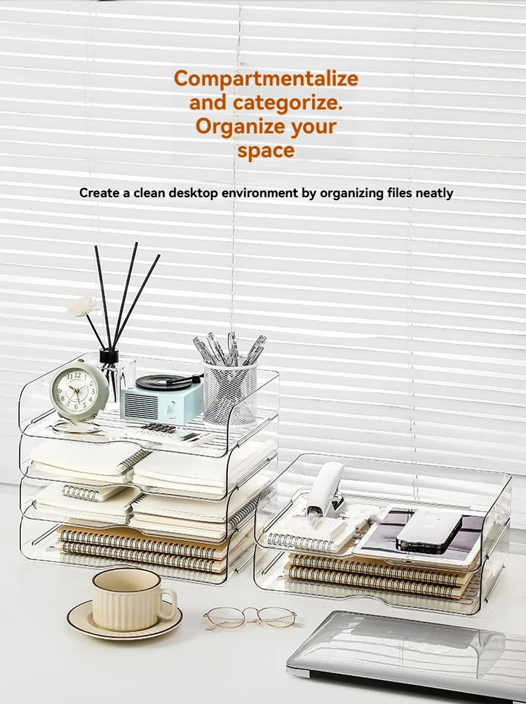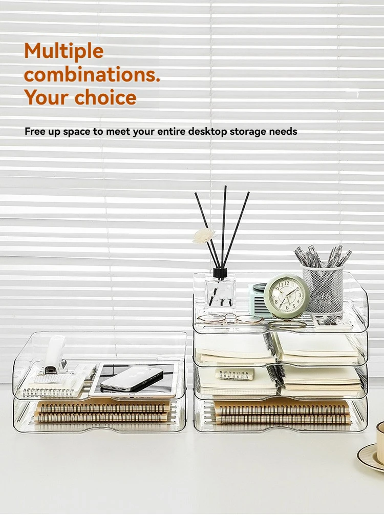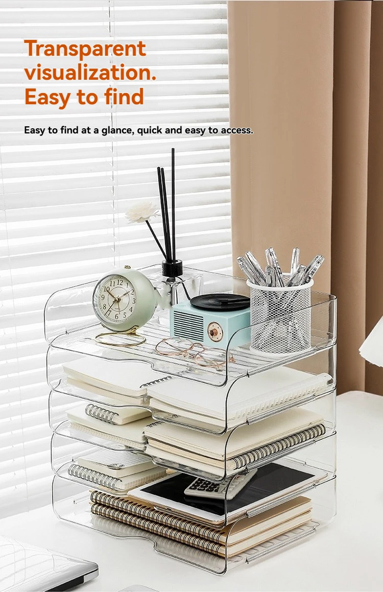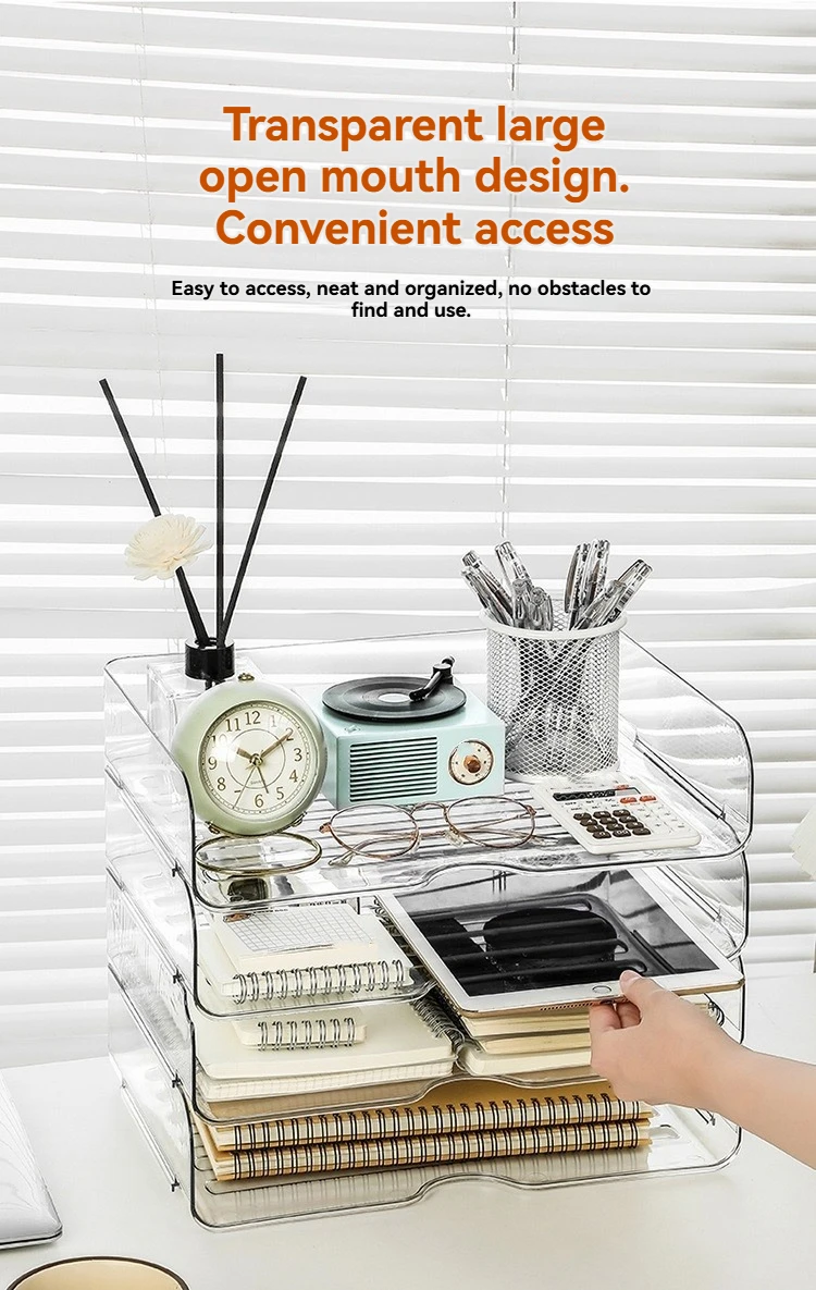 Transparent document storage rack, desktop storage rack, office book table storage box, organizer box