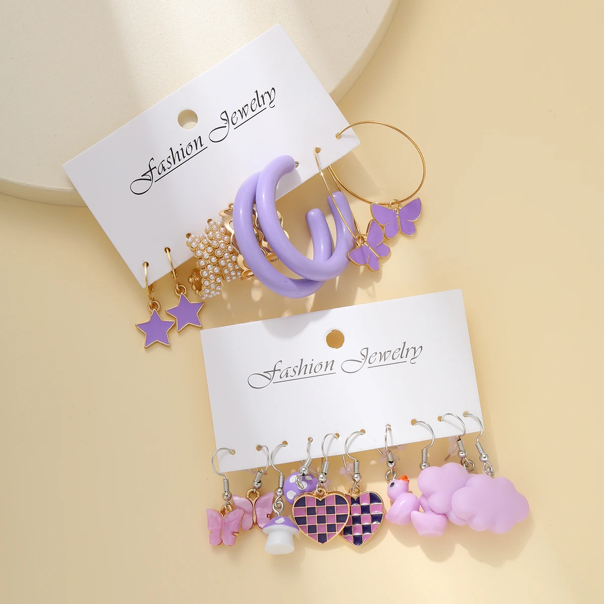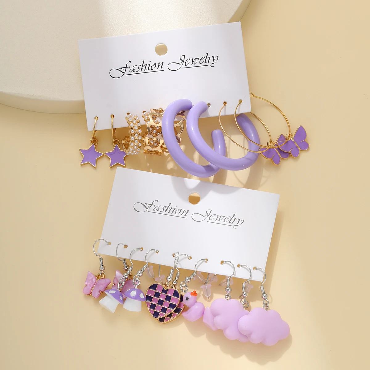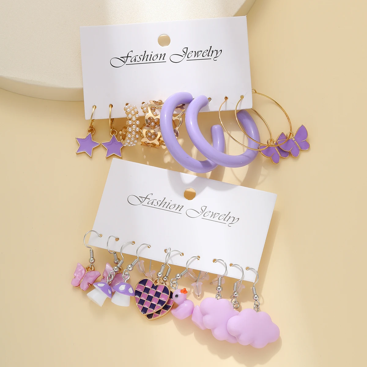 10pcs Set Of Ladies Earrings Purple Pentagram Creative Pearl Duck Mushroom Cartoon Earrings