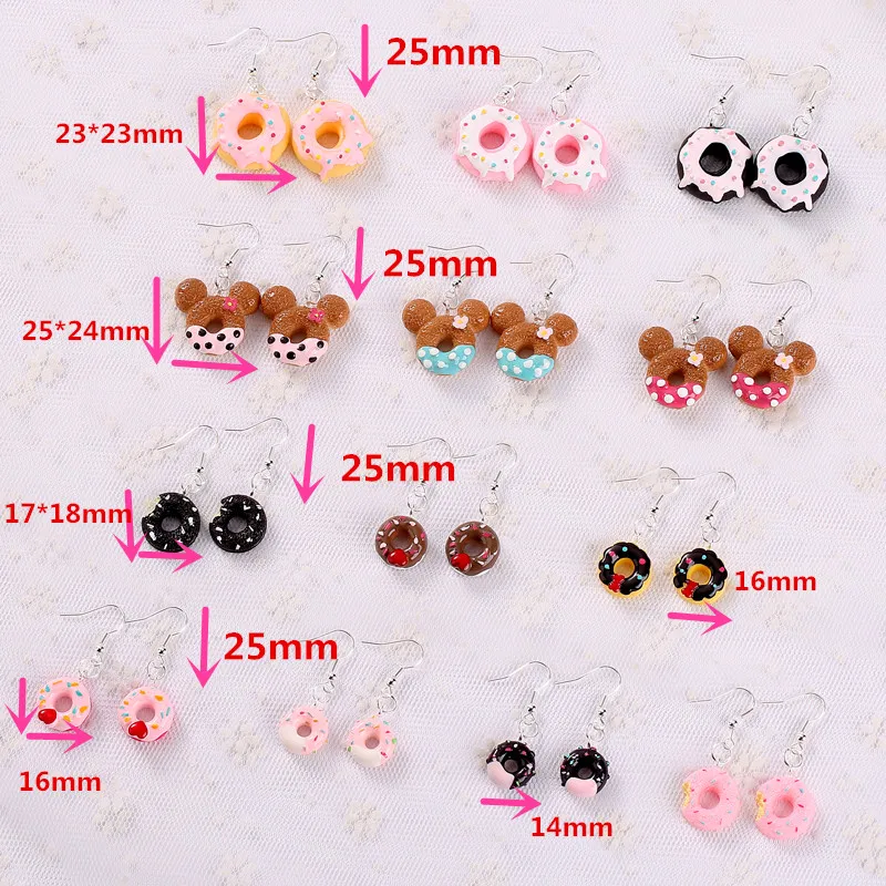 1Pair Women Drop Earrings Flatback Resin Fake Food Donuts Jewelry Dangle Earrings