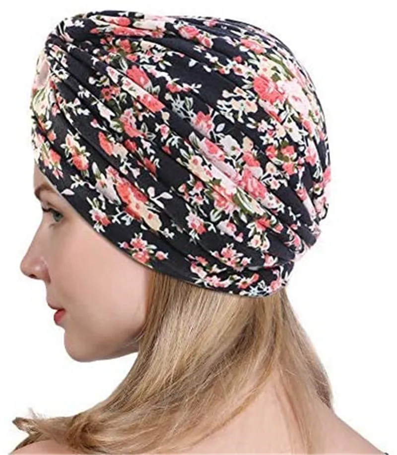 New Africa Hijab Caps Soft Stretchy Turban Head Wrap with Floral Design for Chemo and Everyday Wear
