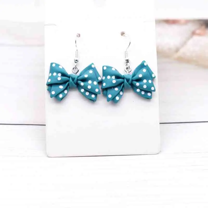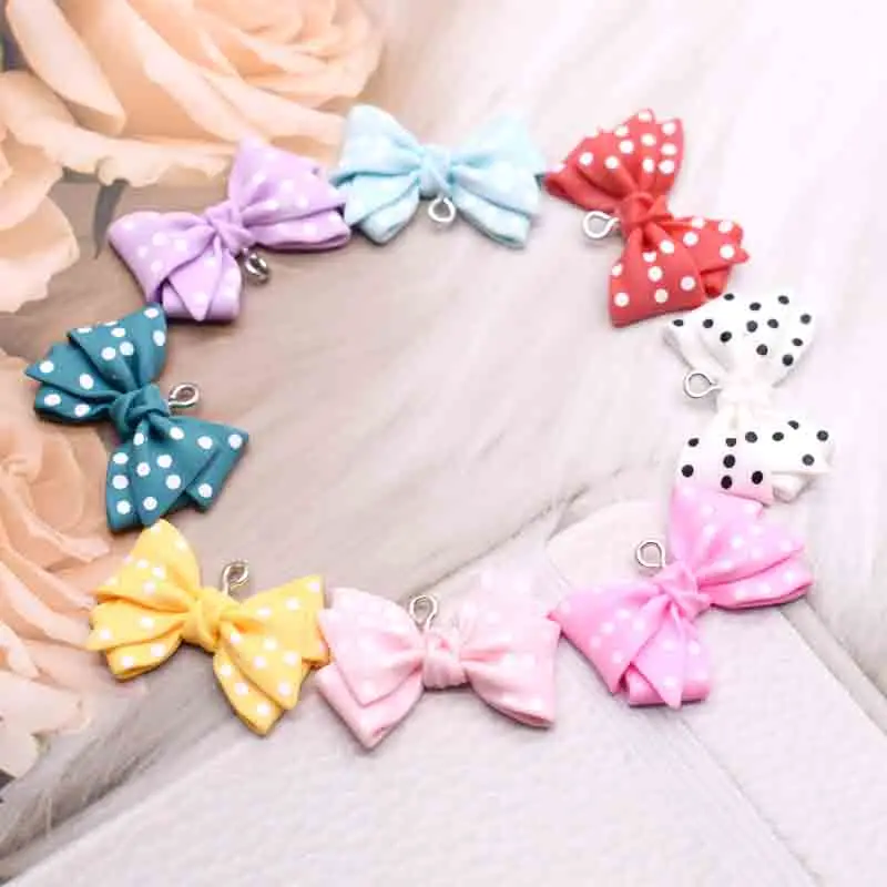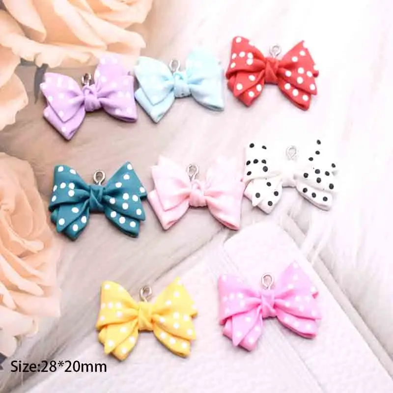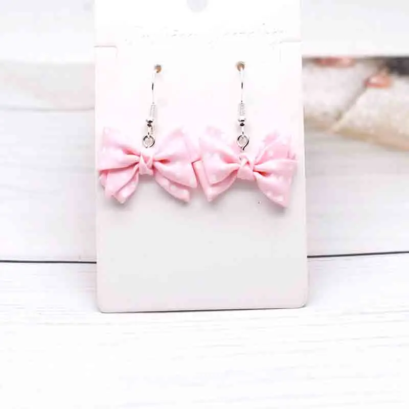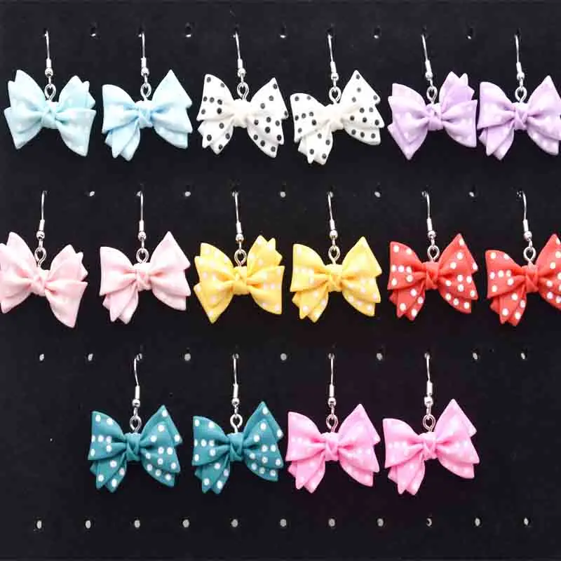 28*20mm Earrings For Girls Women Resin Handmade Cute Small Dot Bowknot Resin Flatback Charms Drop Earrings Funny Gift