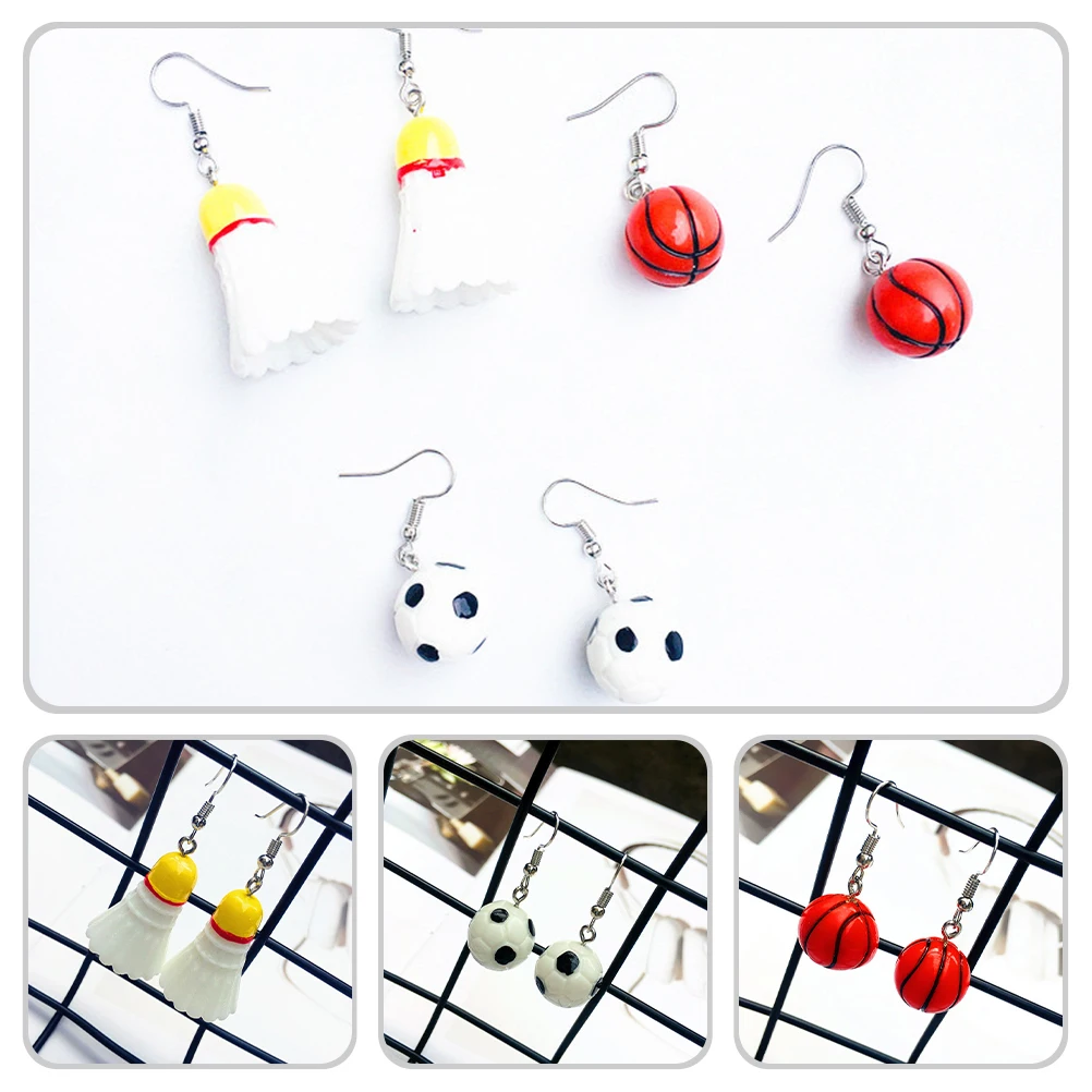 3 Pairs themed Resin Earrings Basketball Football Pendant Cute Ear naments for Sports Earring Girls Safe Durable