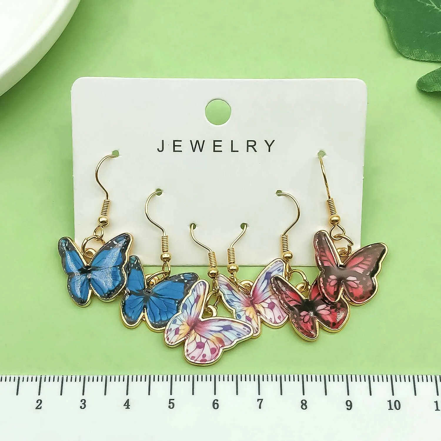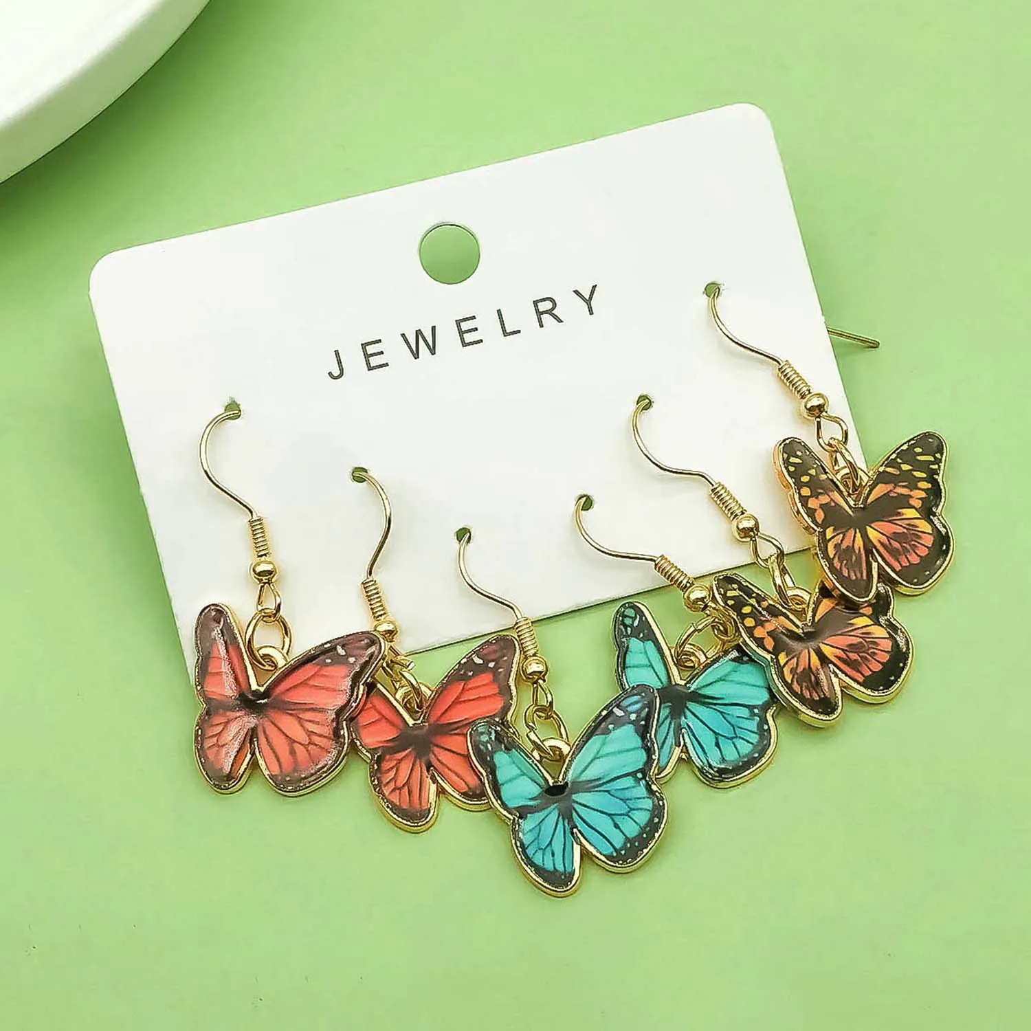 3pairs Fashion Enamel Colorful Butterfly Design Drop Earrings, Jewelry Gifts For Women And Girls