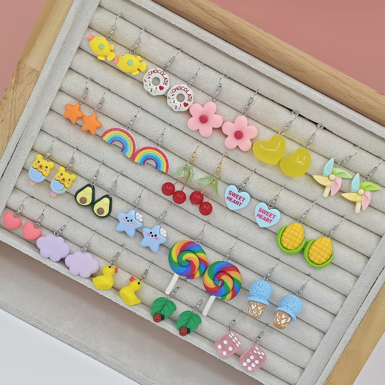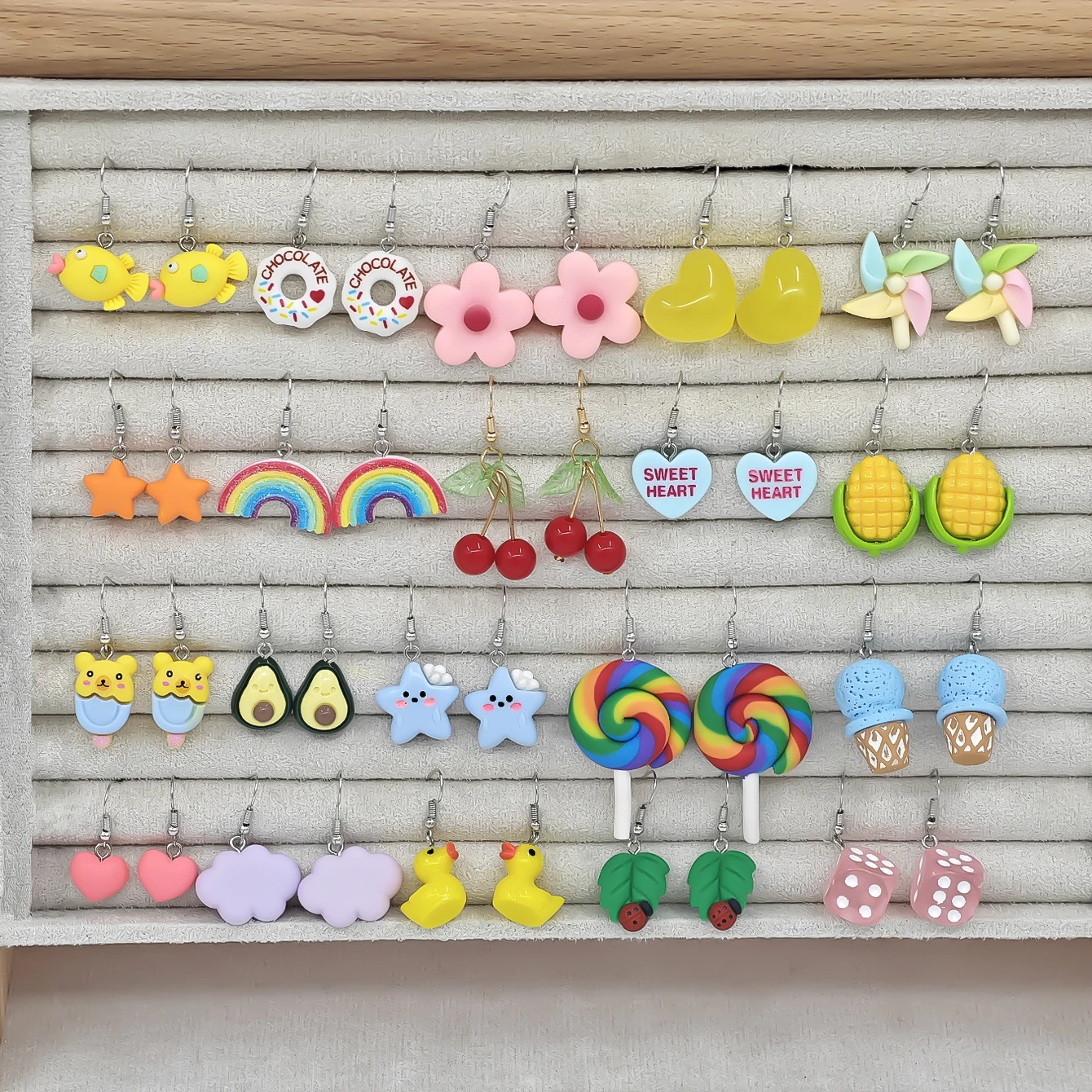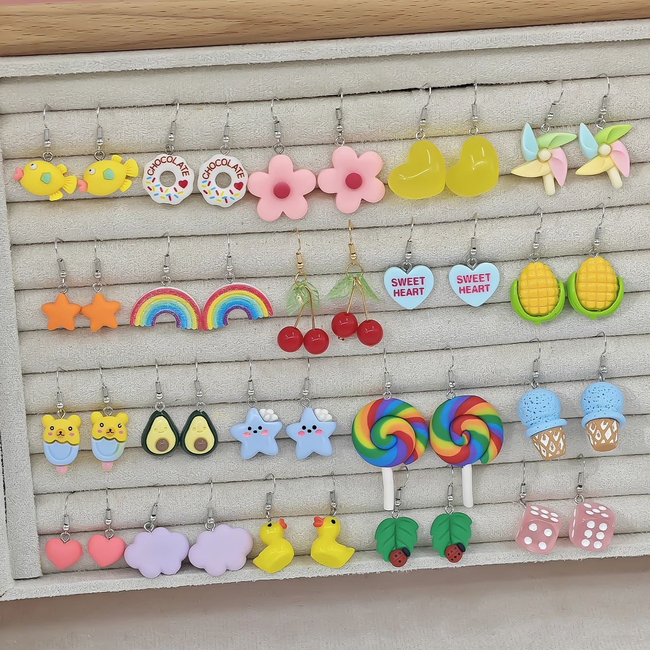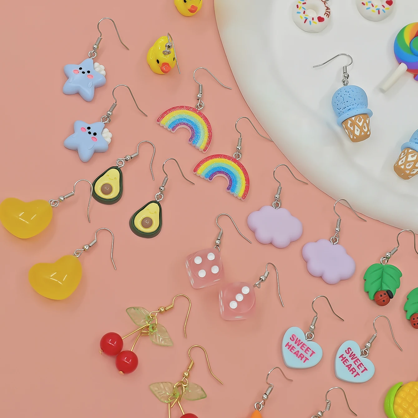 40pcs Cross border Hot selling Luminous Resin Earrings Fun Simulation Love Rainbow Candy Corn Pendant Earrings Set
