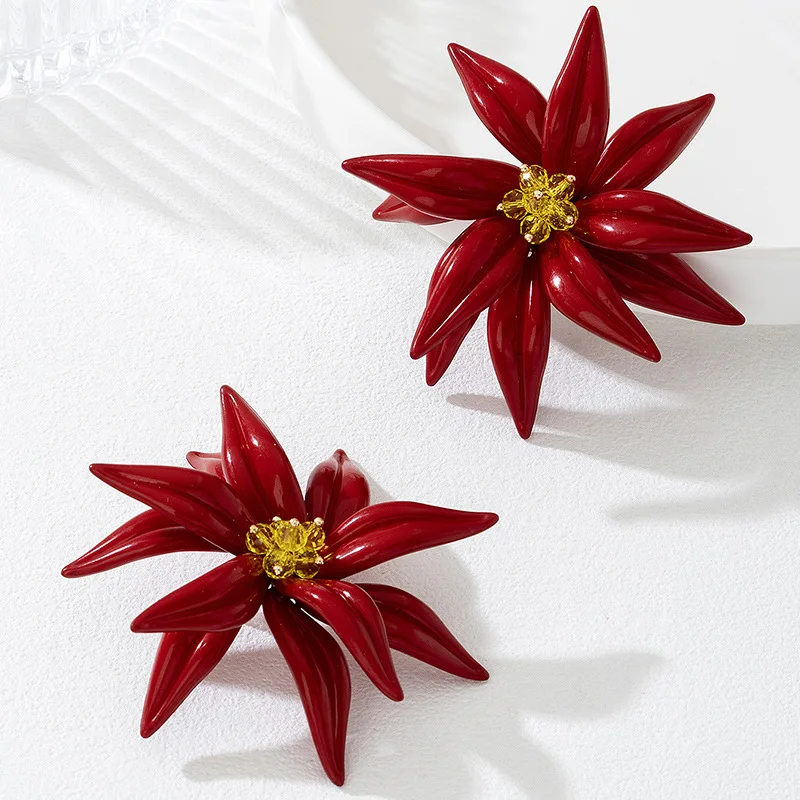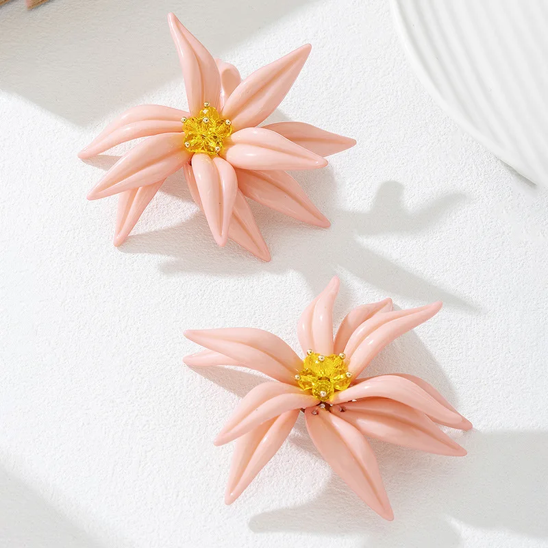 Beaded Three-dimensional Large Flower Earrings For Women Girls Hand-woven Ear Accessories Fashion Jewelry Holiday Party AE302
