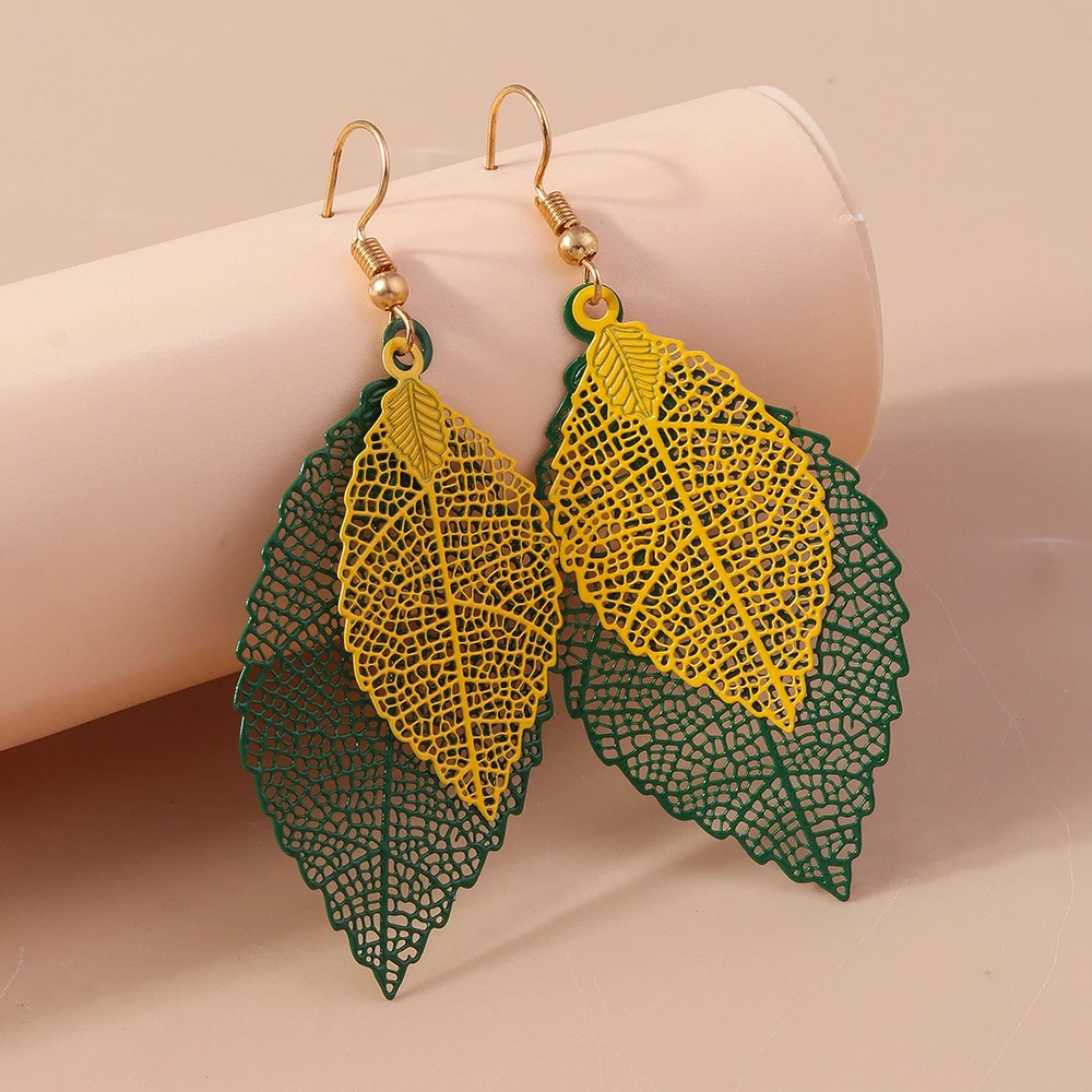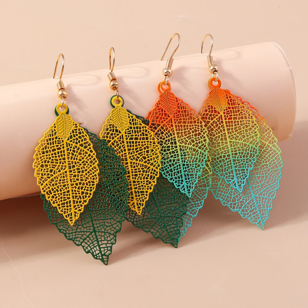 Colorful Bohemia Hollow Double Leaf Drop Earrings for Women Girls Dangle Earrings Party Holiday Jewelry Gifts