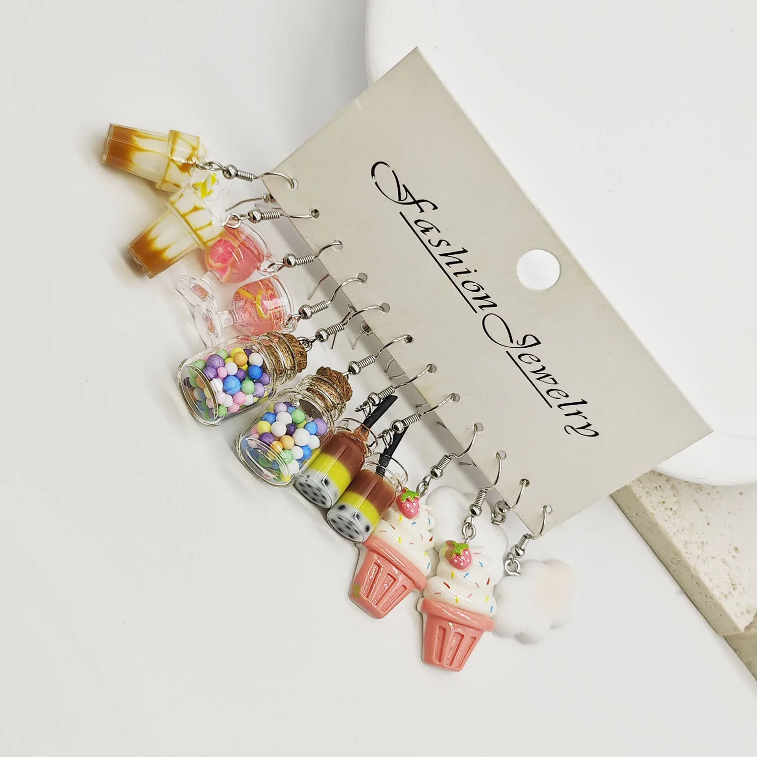 Cross border fashion cartoon resin simulation food and play ice cream milk tea earring set