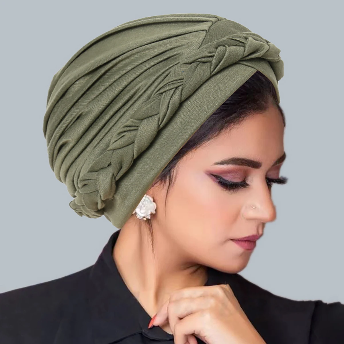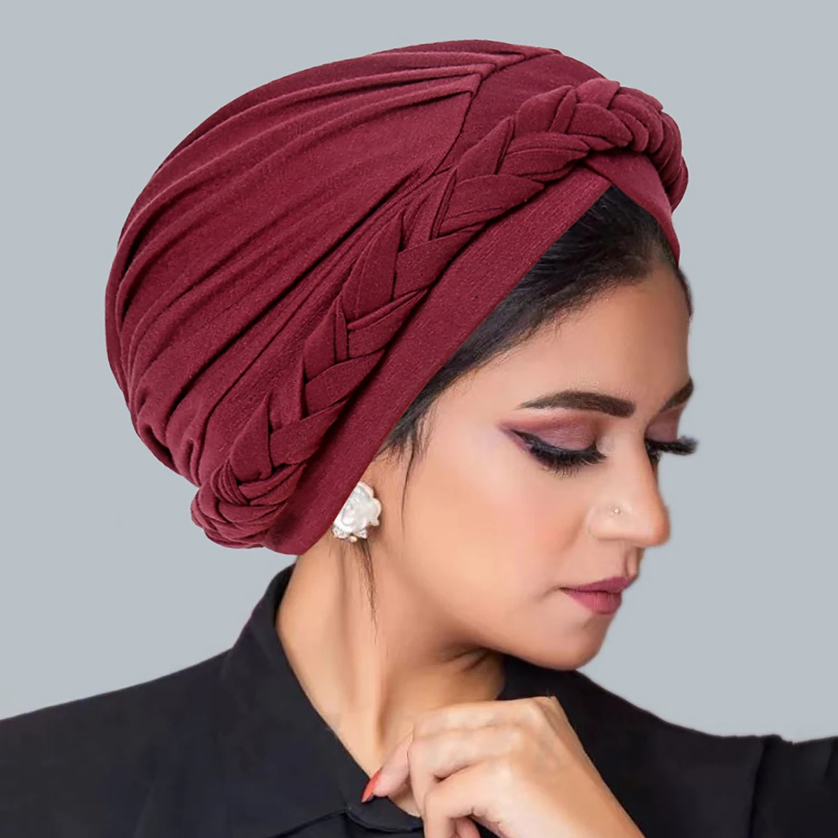Crossed Forehead Women Braid Hijab Cap - Stylish Islamic Turban Bonnet & Headwrap for Fashionable Muslim Women