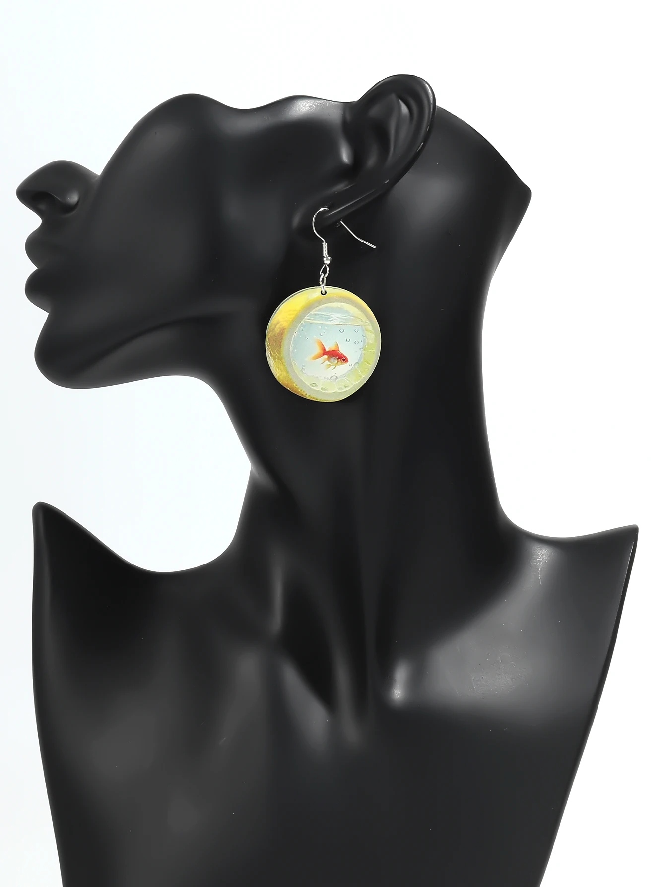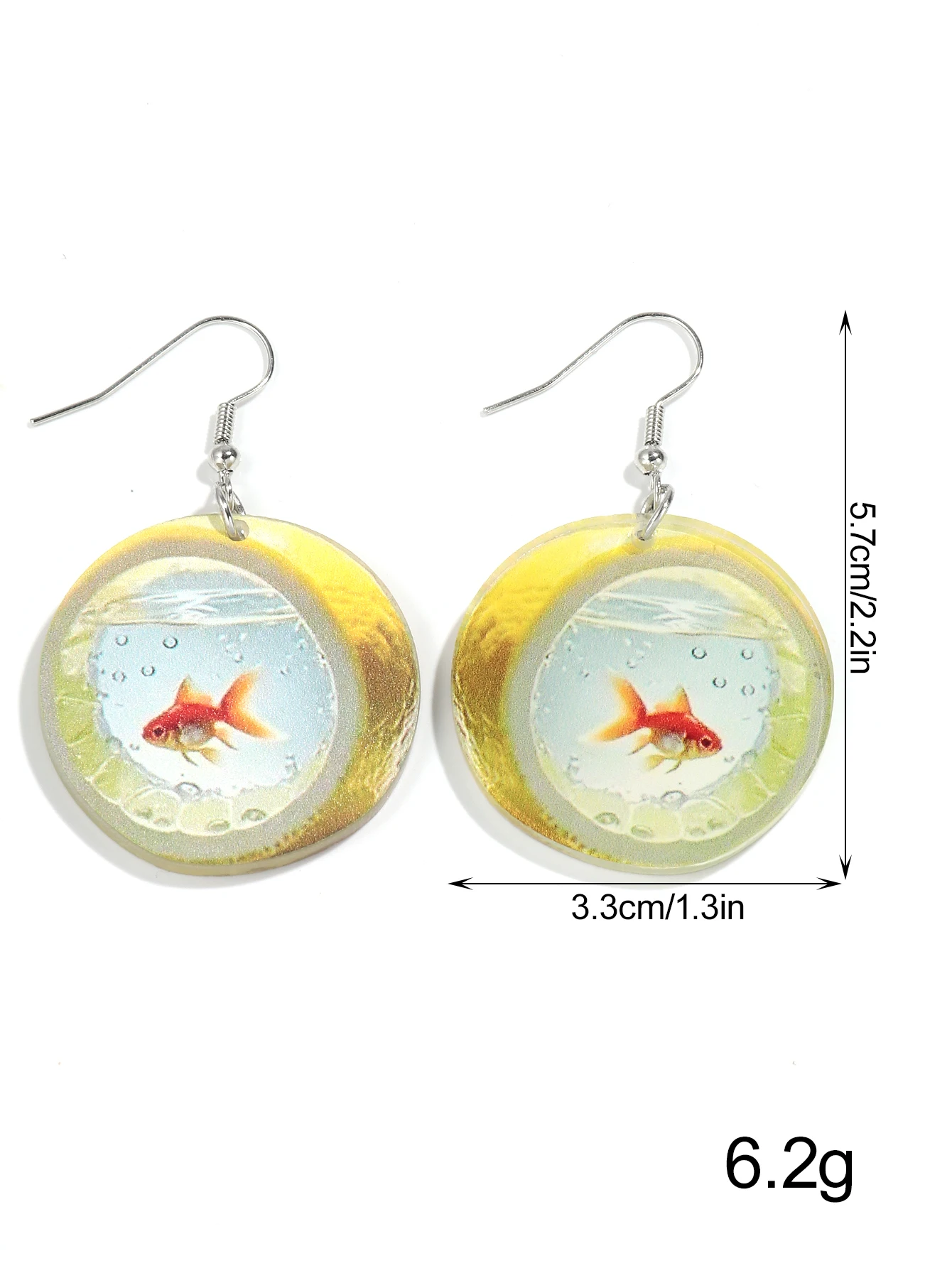 Cute Cartoon 2D Lemon Fish Acrylic Print Drop Earrings for Women Funny Round Carp Dangle Earring Creative Jewelry Birthday Gift