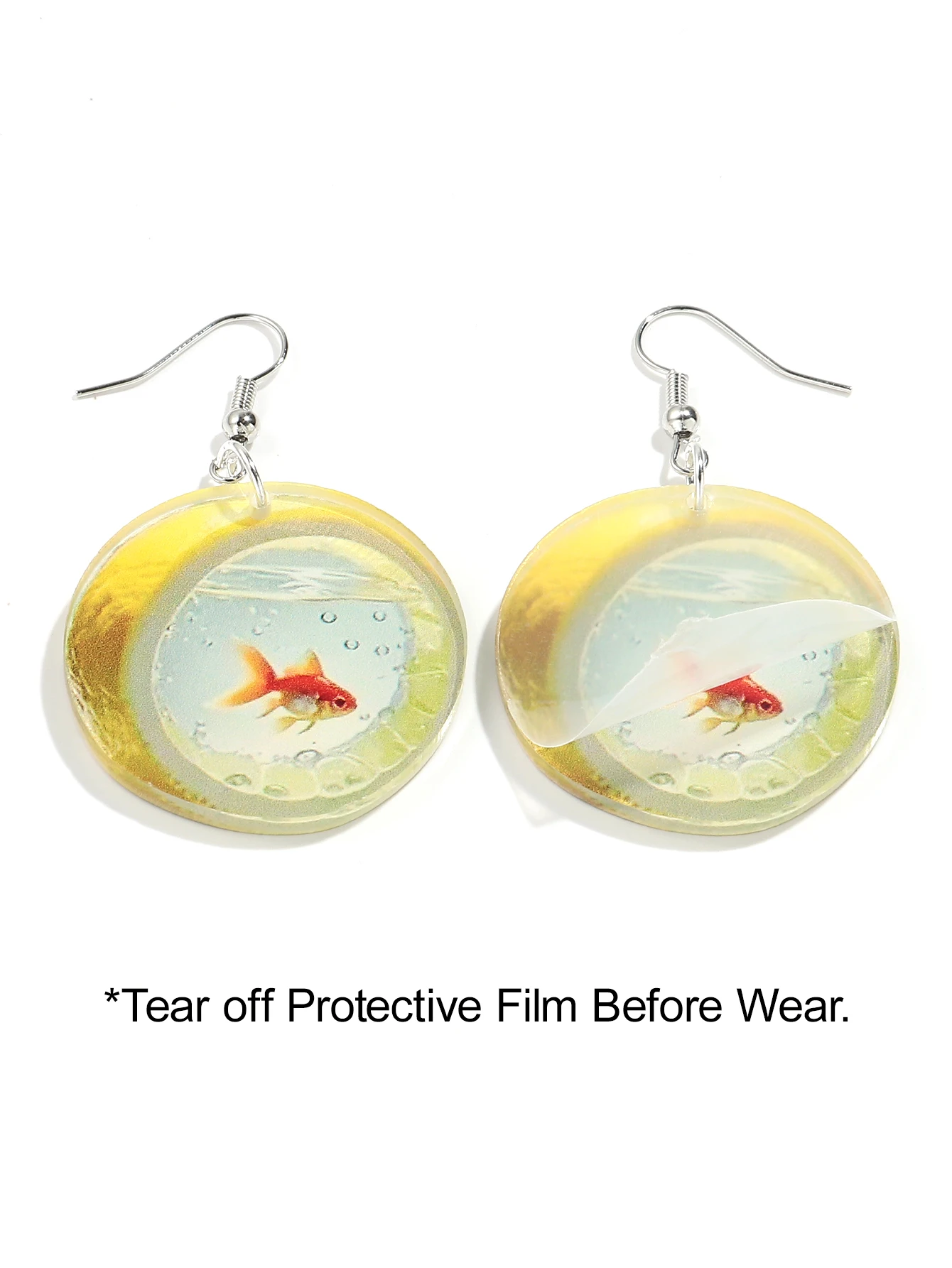 ridescent Acrylic Earrings Laser Cut Goldfish In Bowl Dangle Earrings: Fish Statement Earrings