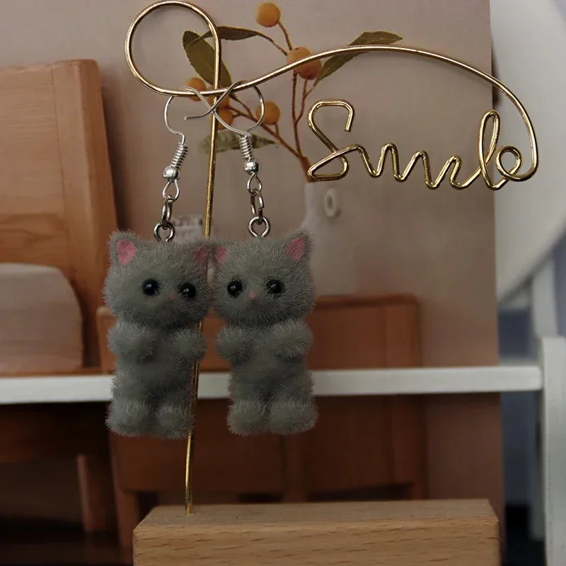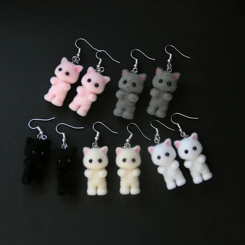Cute Resin Flocked 3D Cat Earrings,Cartoon Animal Earrings,Holiday Party Gift