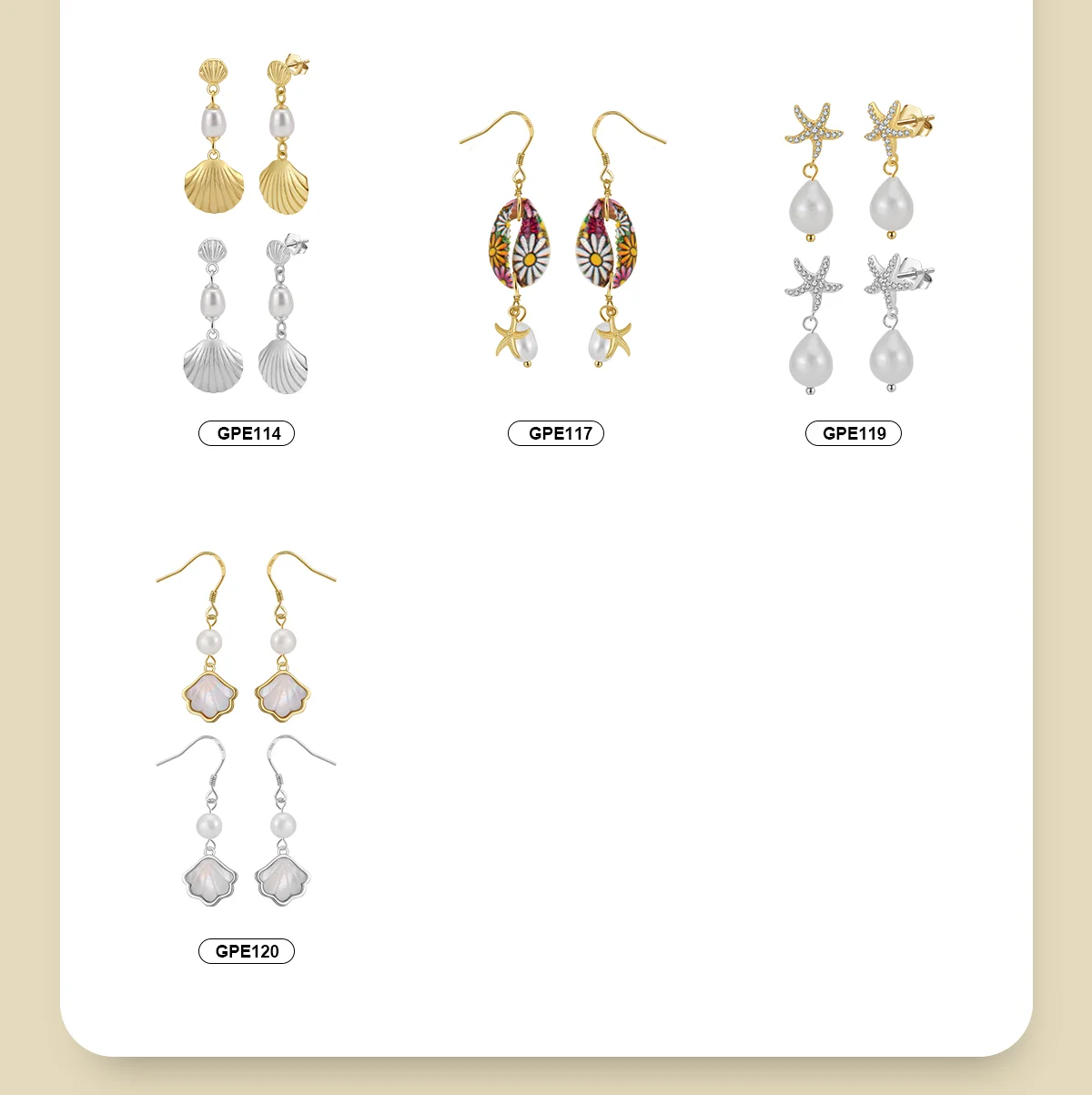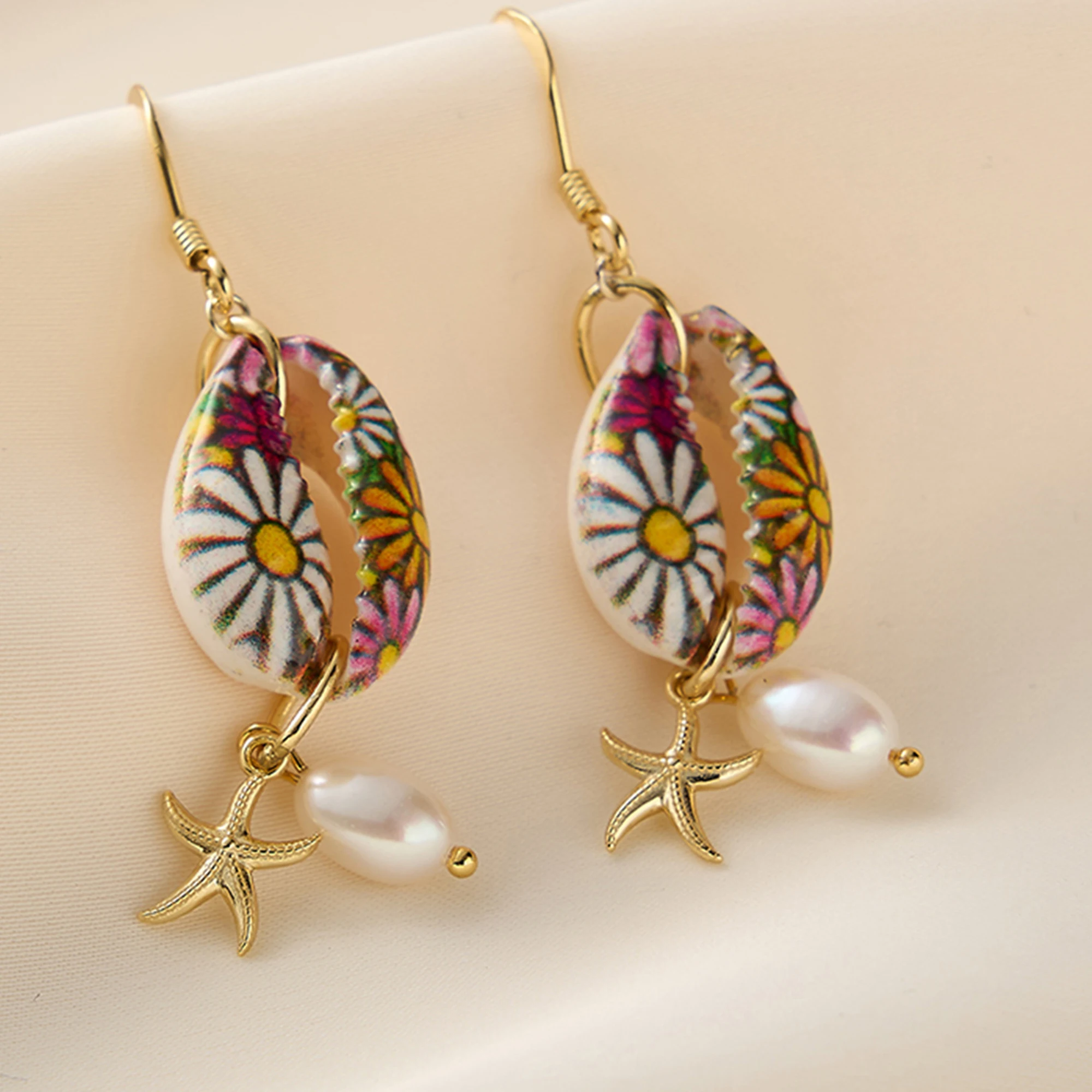 Effie Queen Natural Freshwater Pearls With Starfish Style & Floral Pattern Ornament 925 Sterling Silver Dangle Earrings GPE117