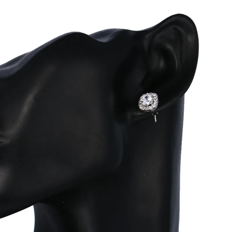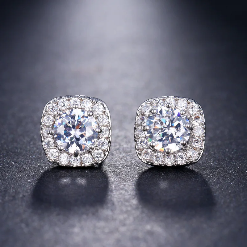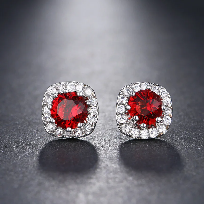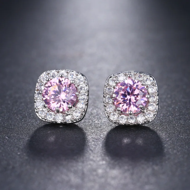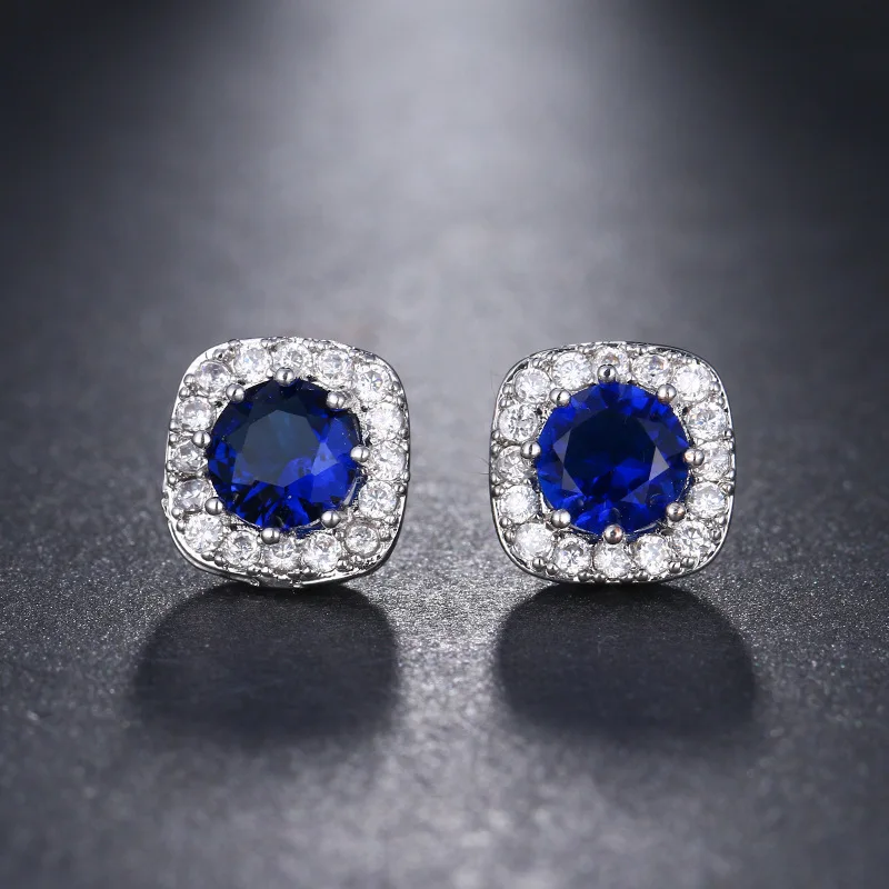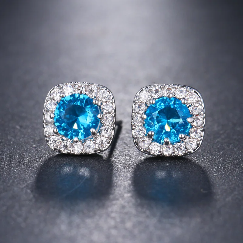 Ekopdee 2021 New Luxury Colourful Blue Zircon Stud Earrings For Women Fashion CZ Geometric Wedding Hoop Earrings Female Jewelry